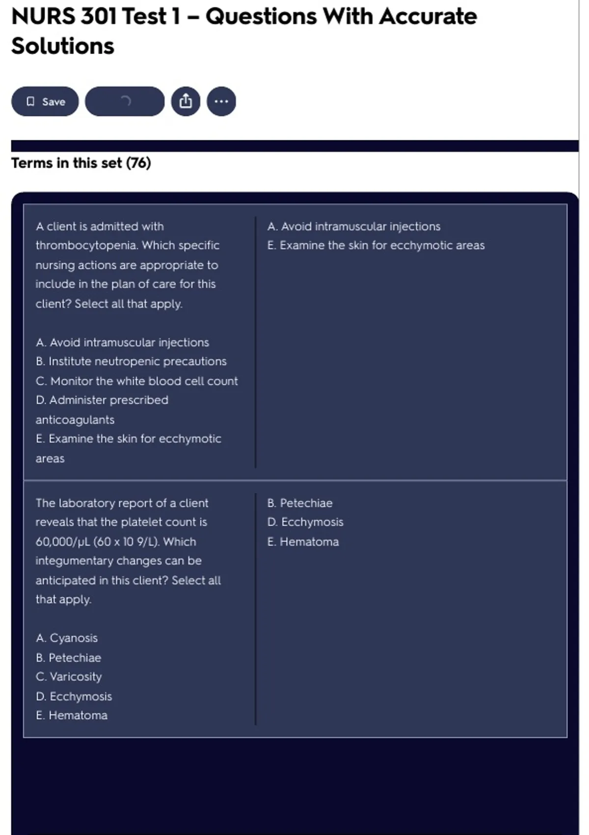 thrombocytopenia. Which specific E. Examine the skin for ecchymotic areas