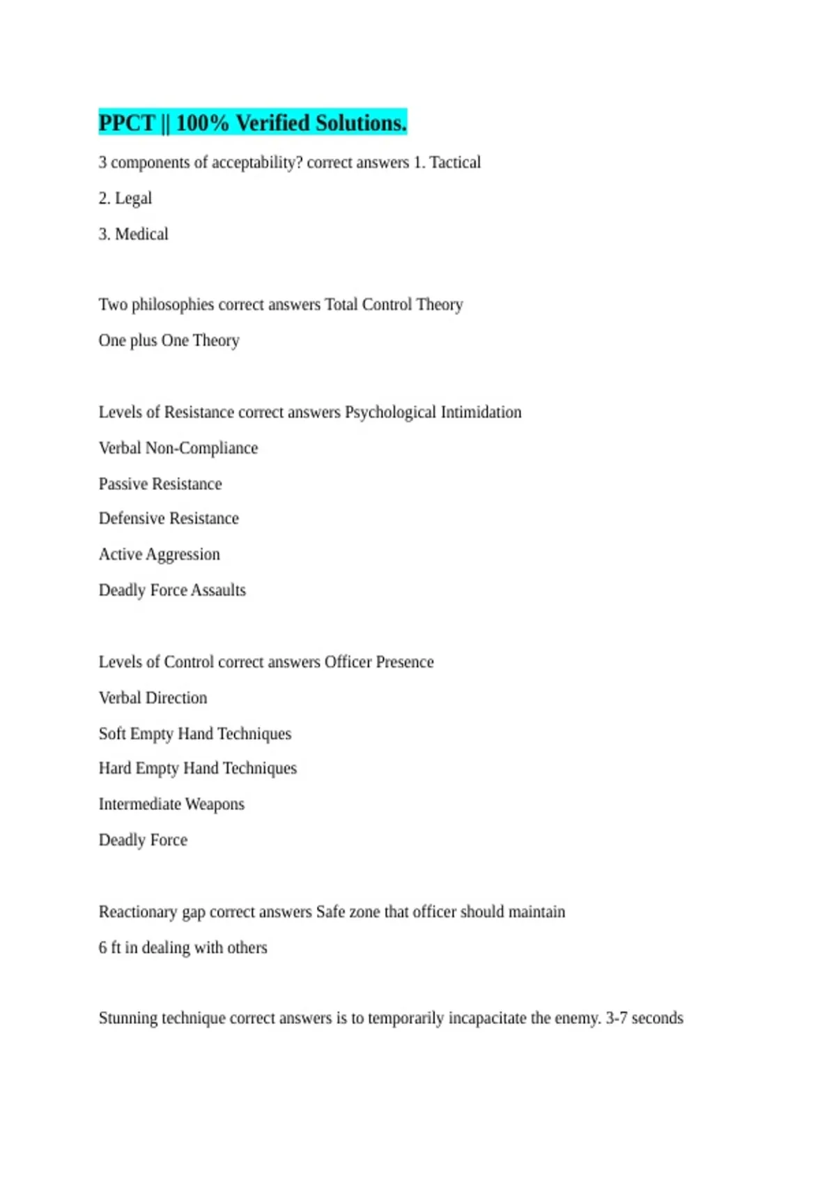 Levels of Control correct answers Officer Presence