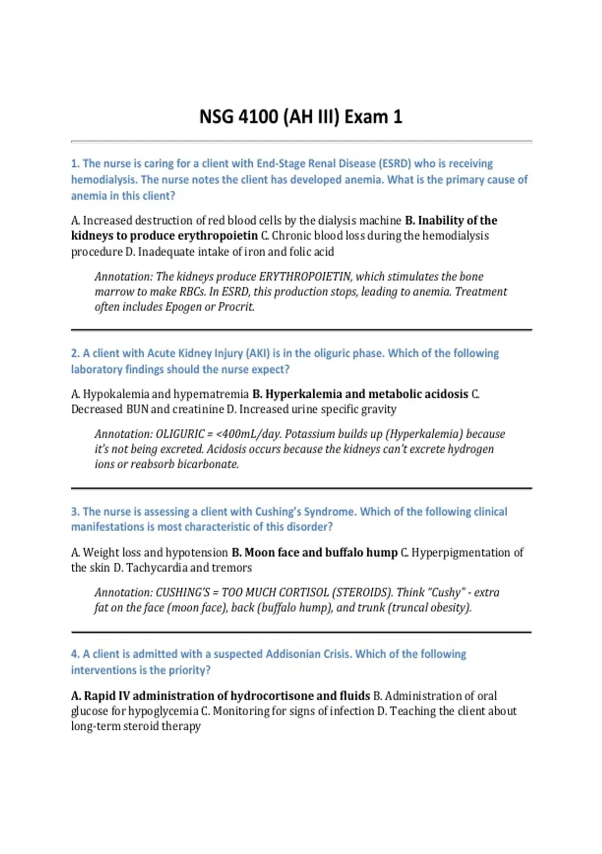 NSG 4100 (AH III) Exam 1