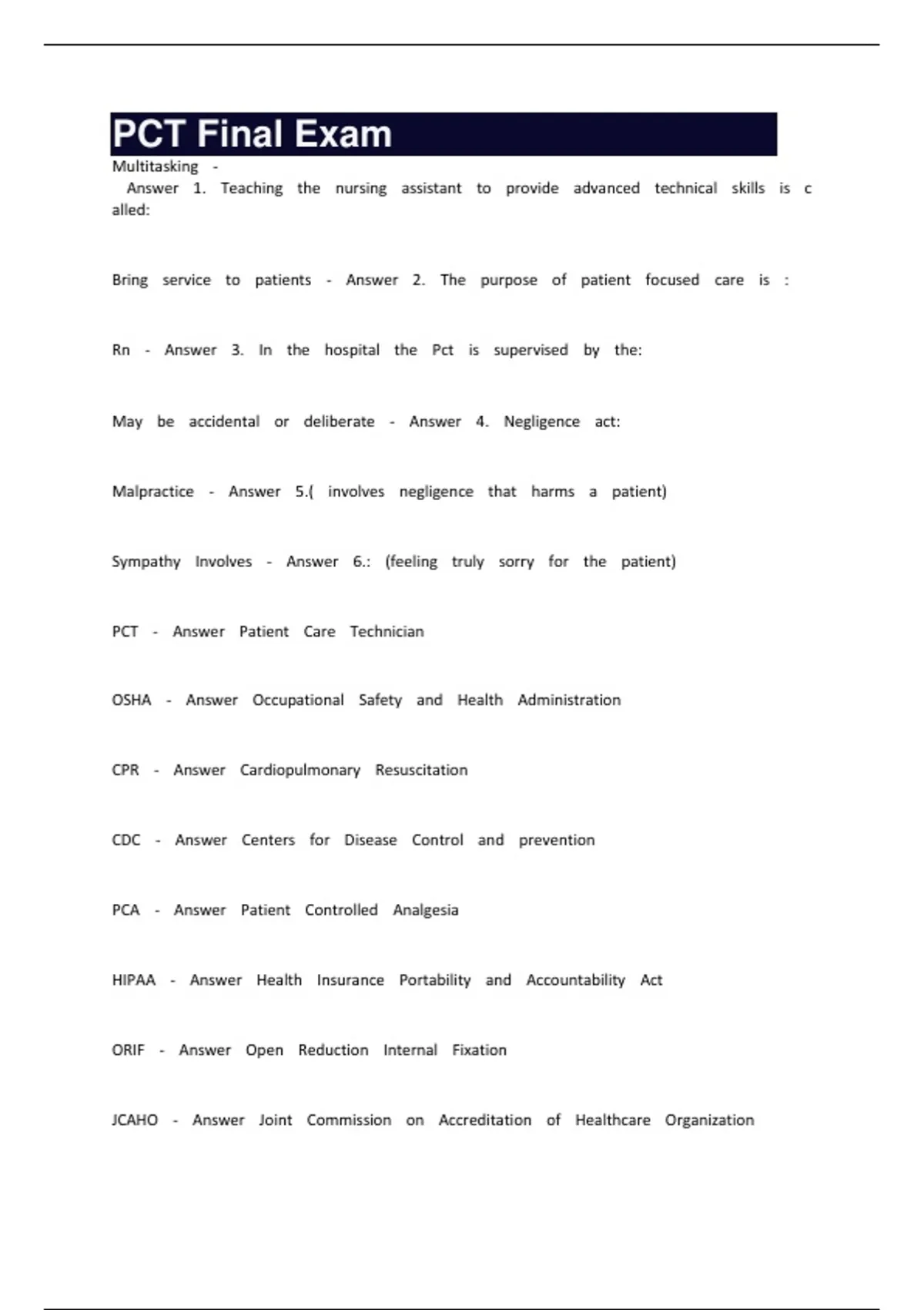 PCT Final Exam