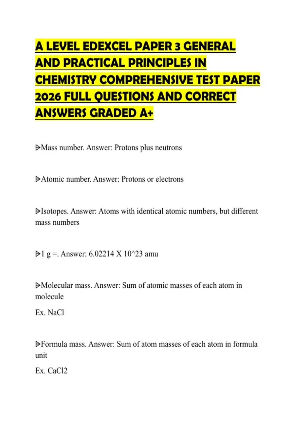 CHEMISTRY COMPREHENSIVE TEST PAPER