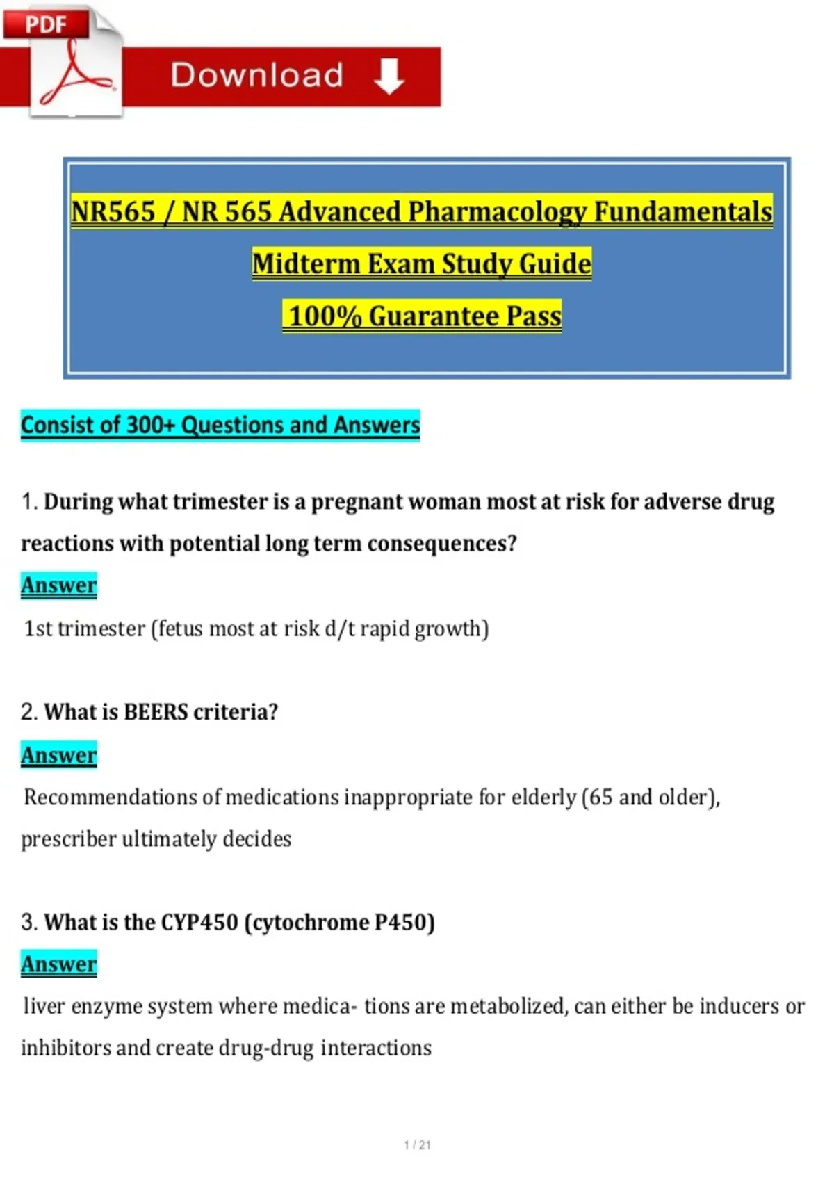 NR565 / NR 565 Advanced Pharmacology Fundamentals