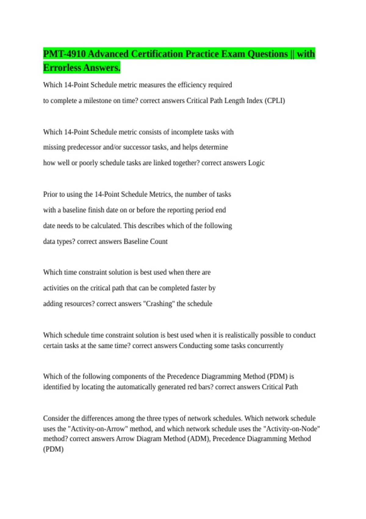 PMT-4910 Advanced Certification Practice Exam Questions || with Errorless Answers.