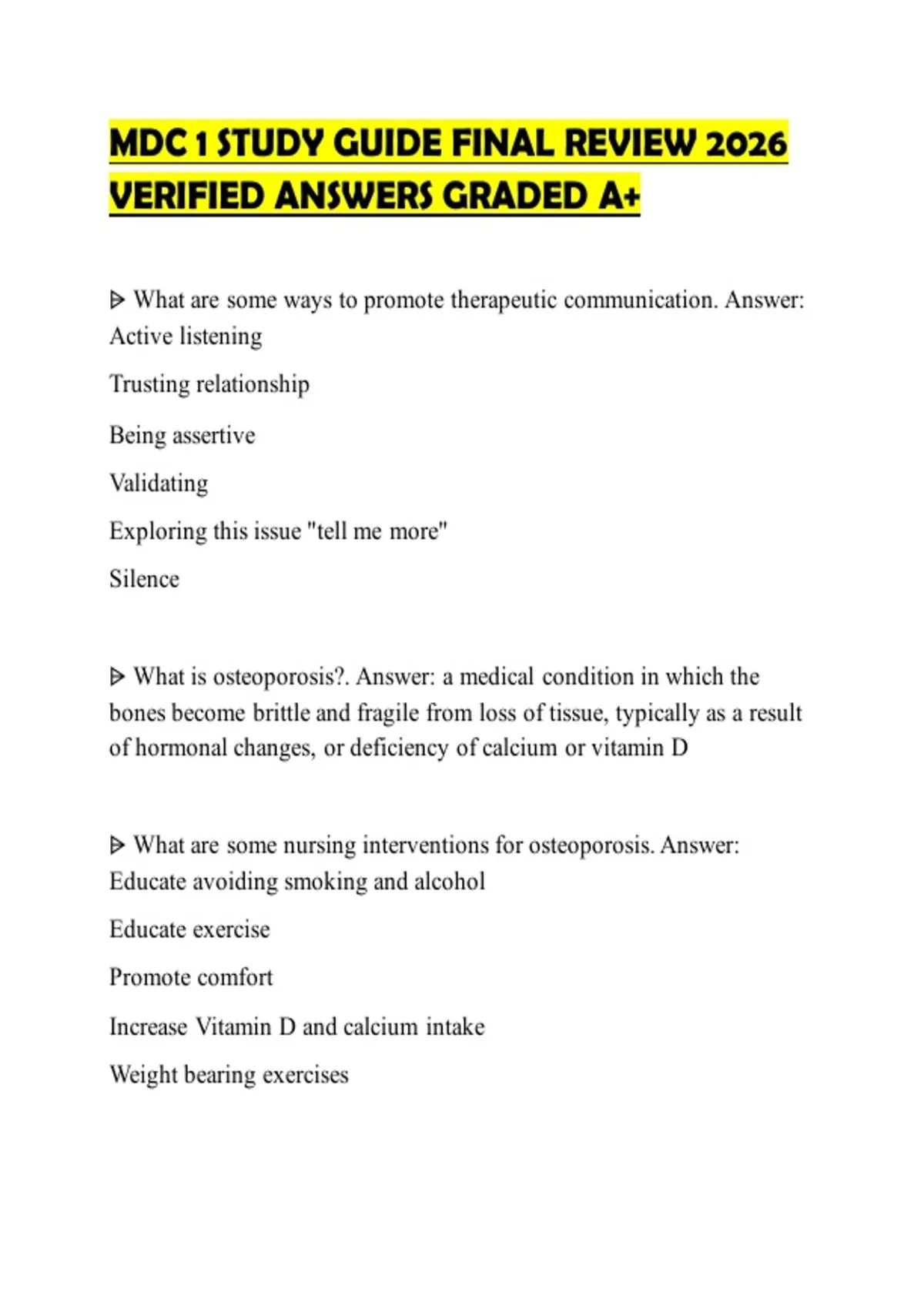 ⩥ What are some nursing interventions for osteoporosis. Answer: