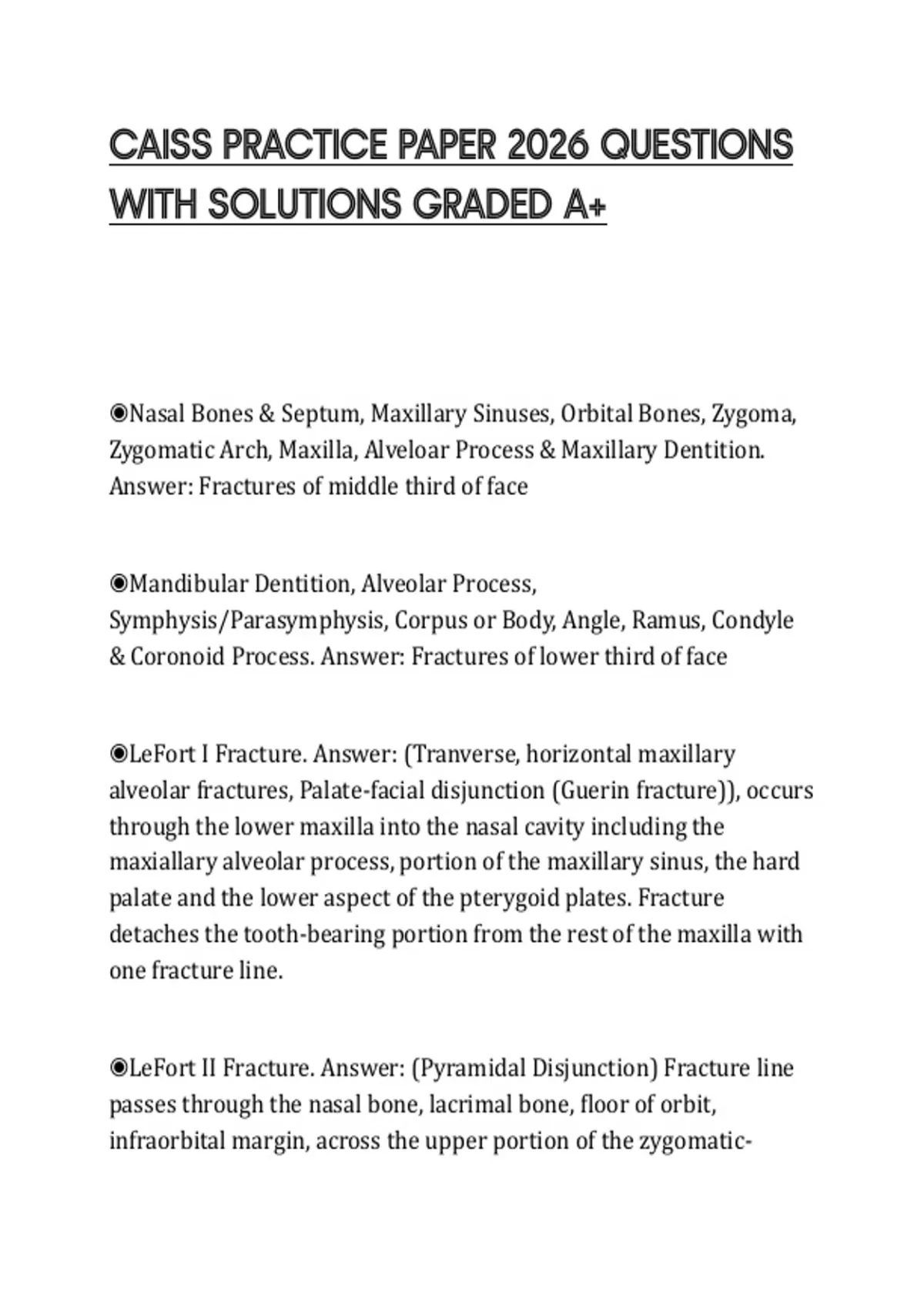 Answer: Fractures of middle third of face