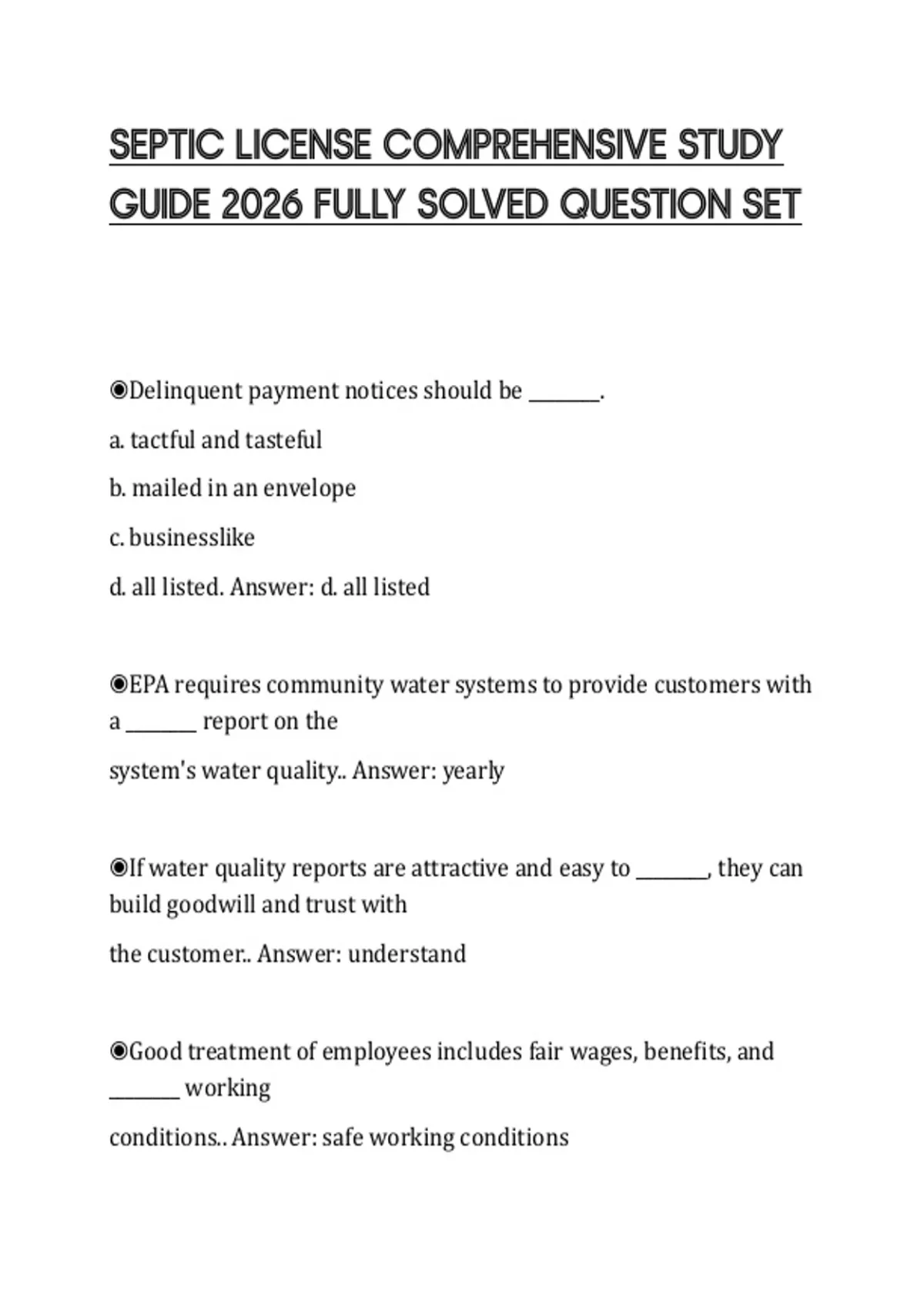 SEPTIC LICENSE COMPREHENSIVE STUDY GUIDE 2026 FULLY SOLVED QUESTION SET
