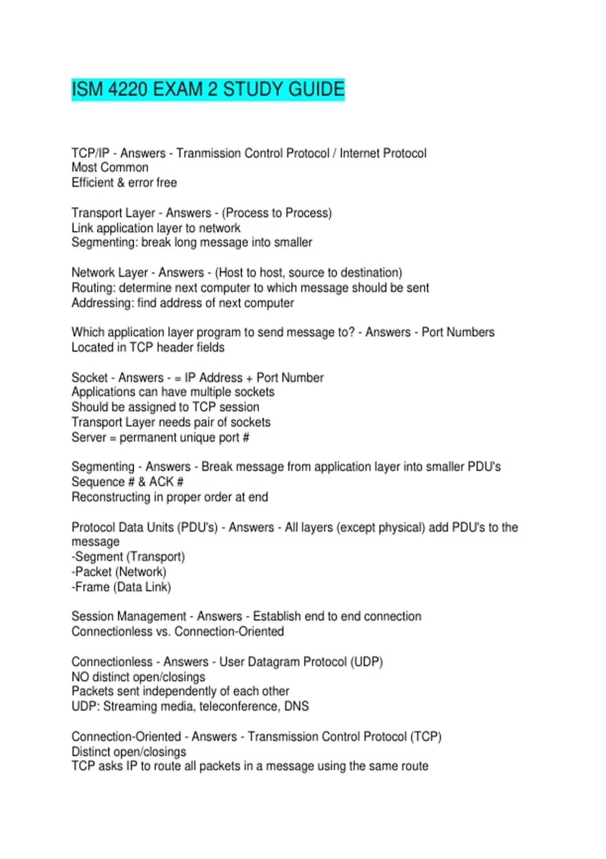 Connection-Oriented - Answers - Transmission Control Protocol (TCP)