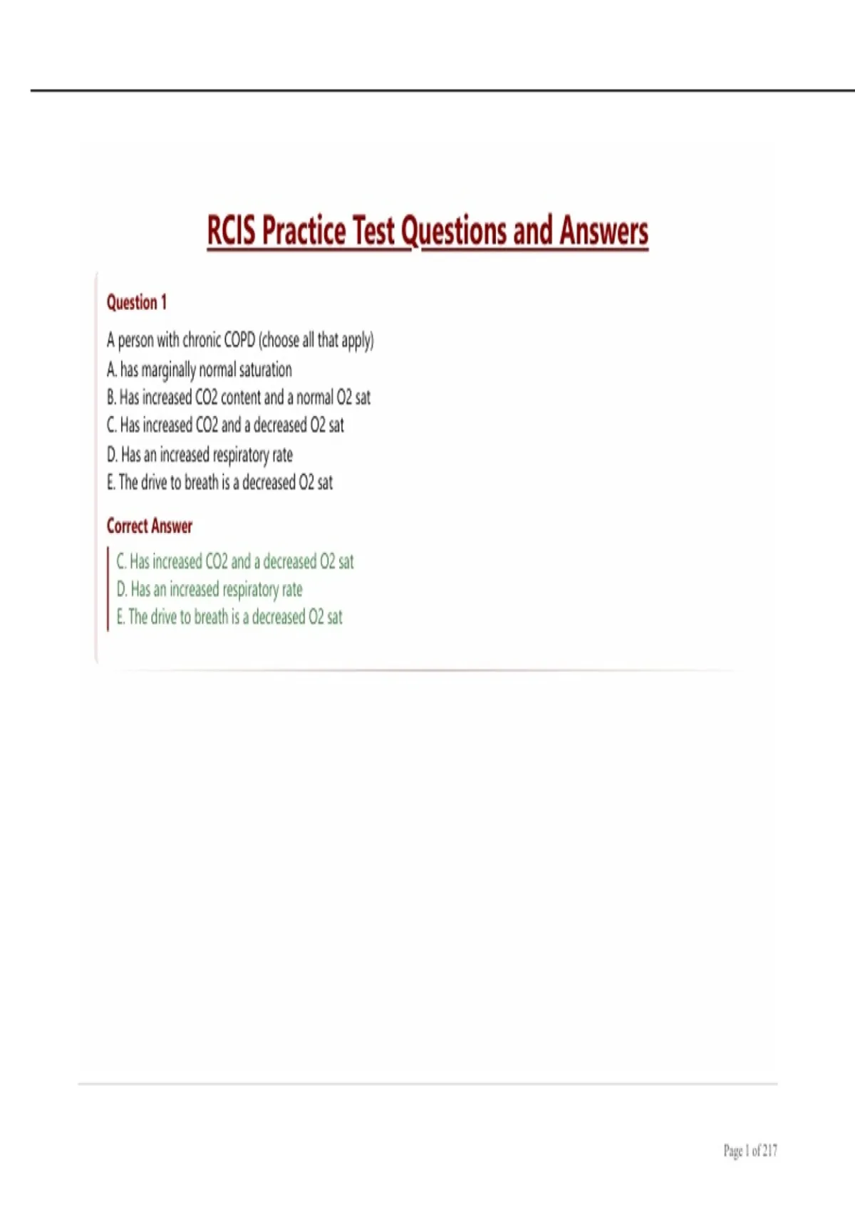 RCIS Practice Test Questions and Answers