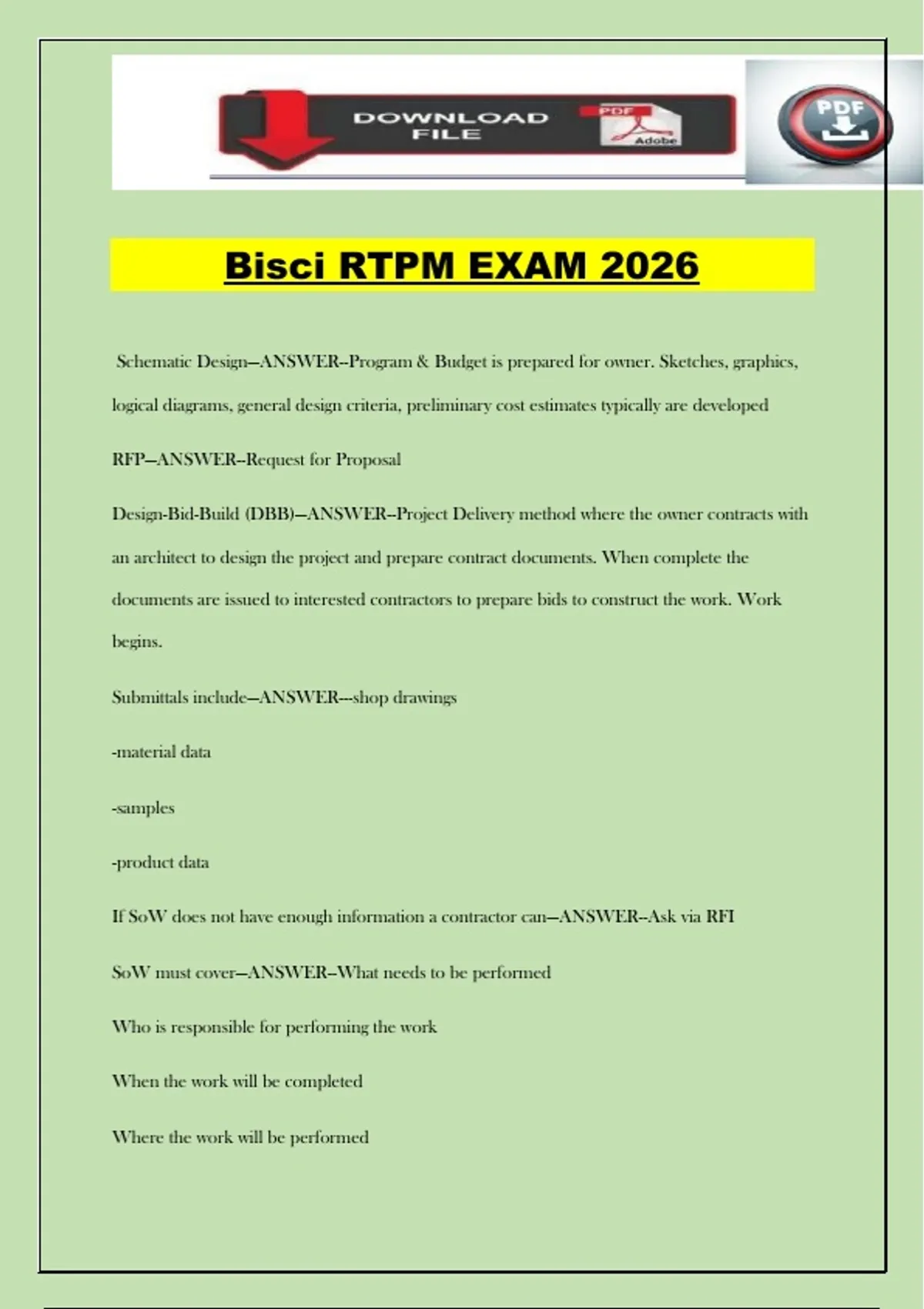 Bisci RTPM EXAM 2026