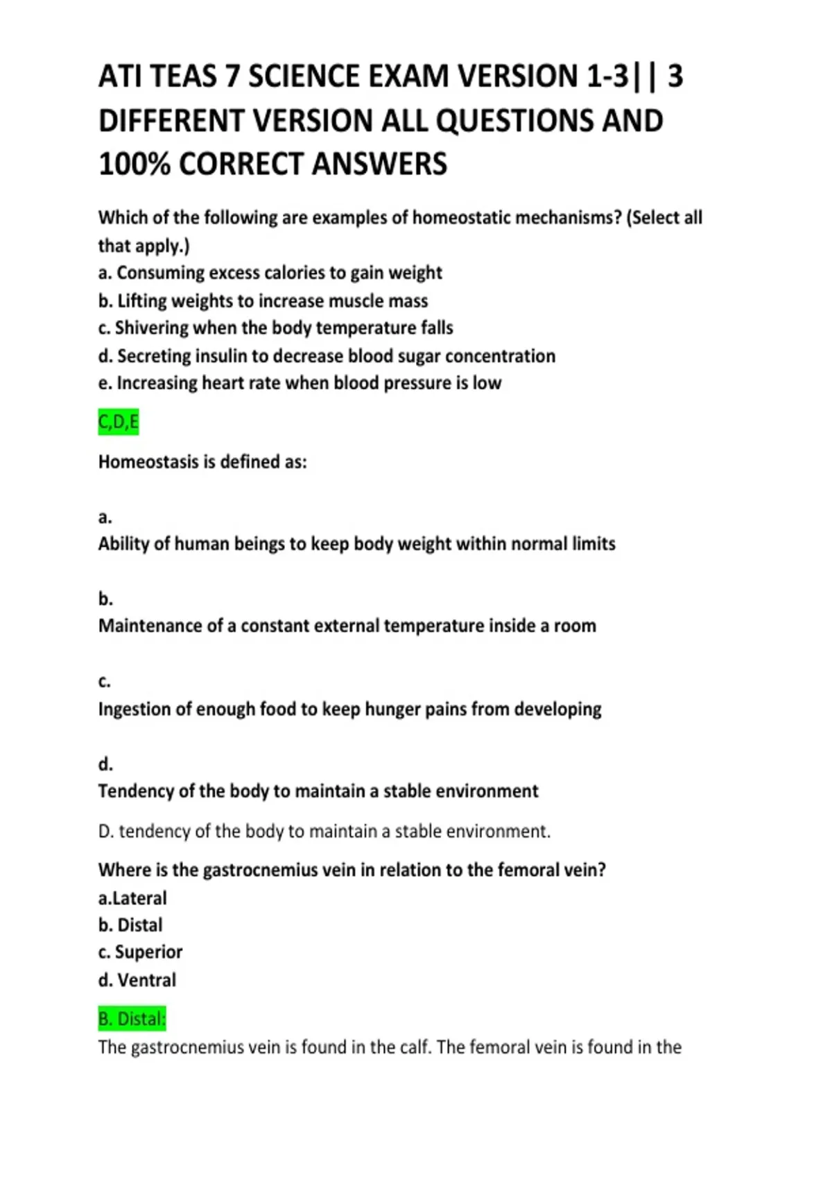 ATI TEAS 7 SCIENCE EXAM VERSION 1-3|| 3 DIFFERENT VERSION ALL QUESTIONS AND 100% CORRECT ANSWERS