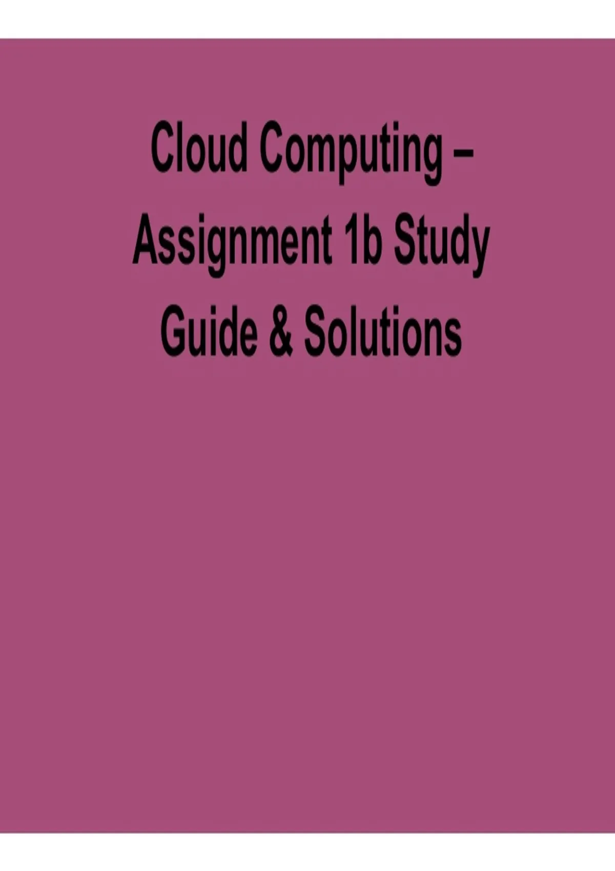 Cloud Computing – Assignment 1b Study Guide & Solutions 1 Cloud Computing – Assignment 1b Study Guide & Solutions.pdf