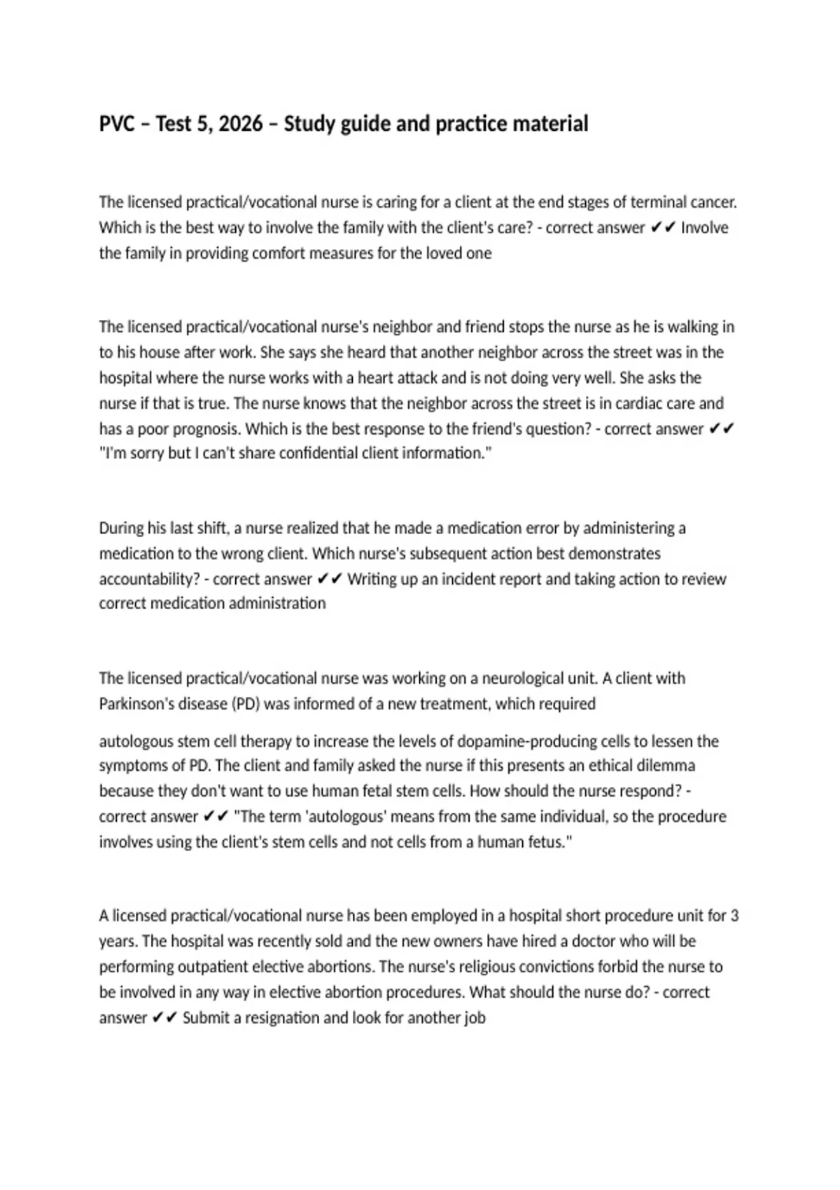, The licensed practical/vocational nurse was caring for a client in a nursing home who has end-