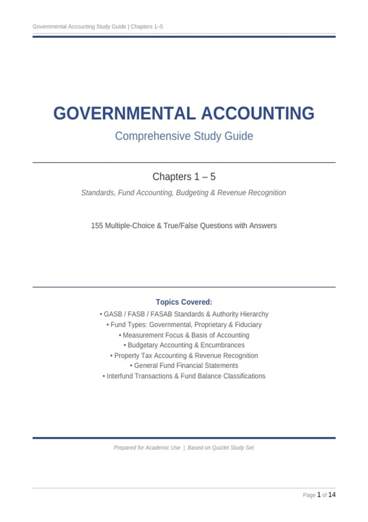 , Governmental Accounting Study Guide | Chapters 1–5