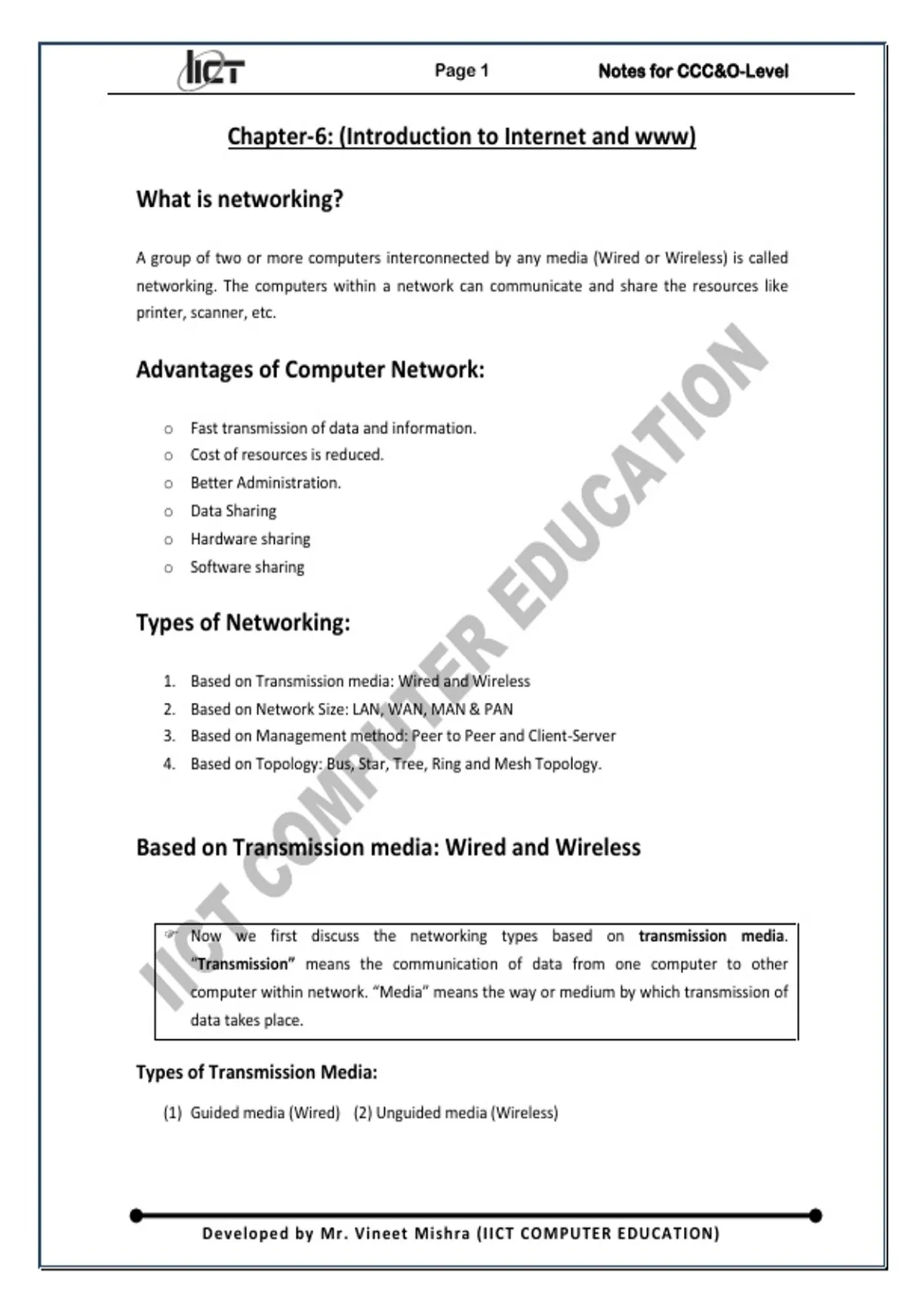 Developed by Mr. Vineet Mishra (IICT COMPUTER EDUCATION)