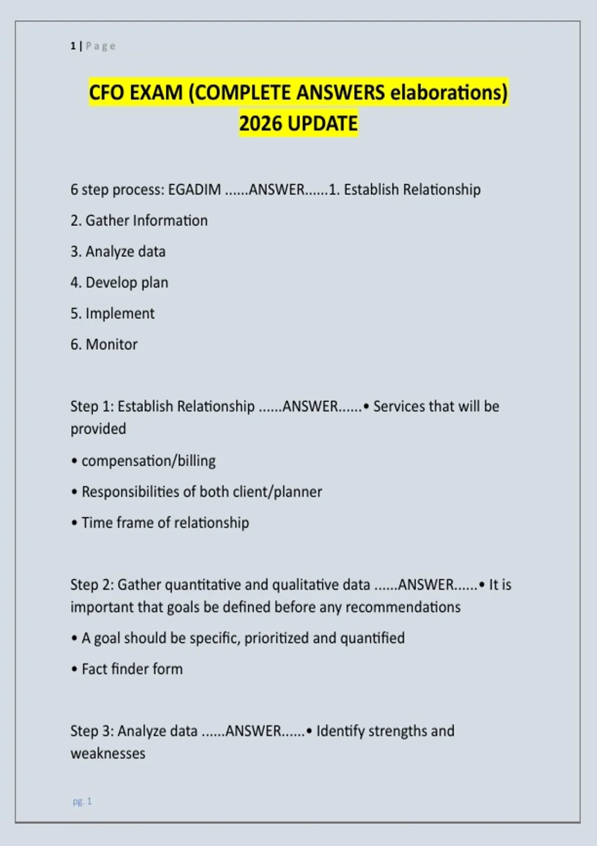 CFO EXAM (COMPLETE ANSWERS elaborations)