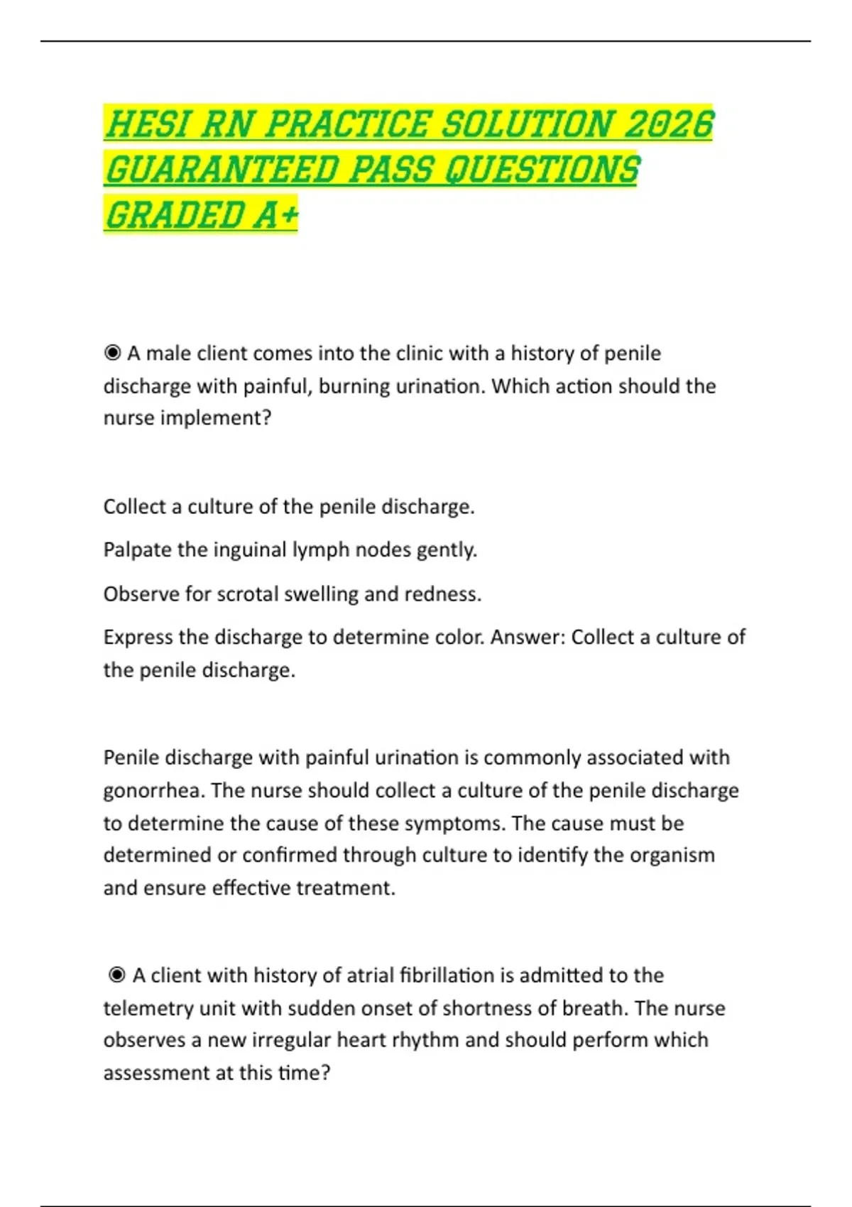 gonorrhea. The nurse should collect a culture of the penile discharge