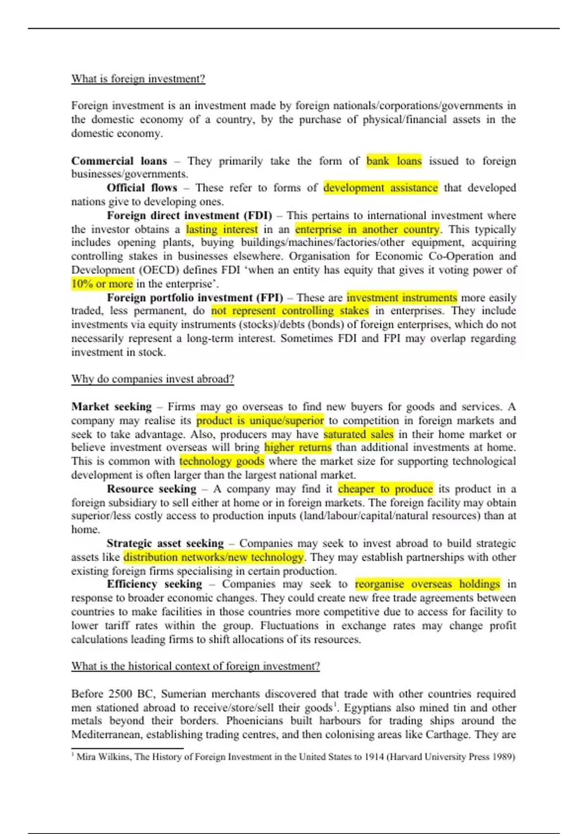 What is the historical context of foreign investment?