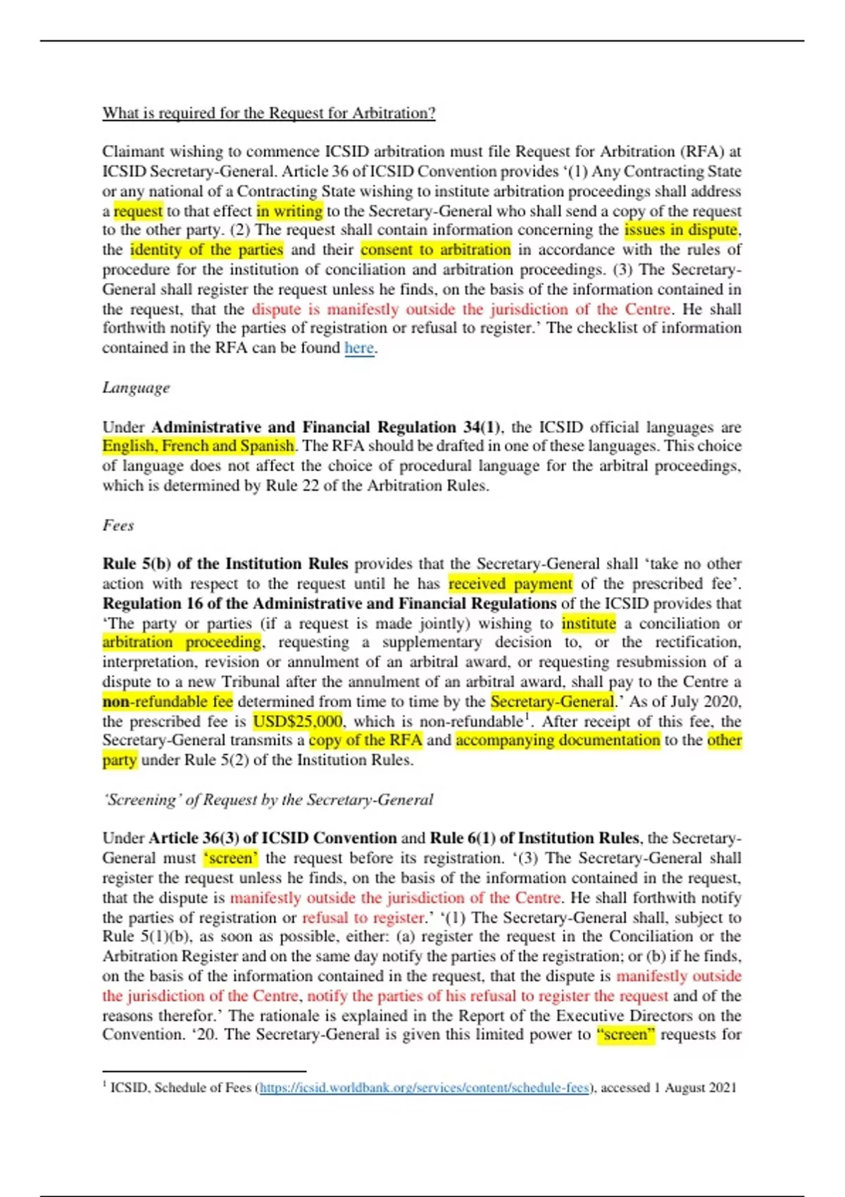ICSID, Schedule of Fees (https://icsid.worldbank.org/services/content/schedule-fees), accessed 1 August 2021