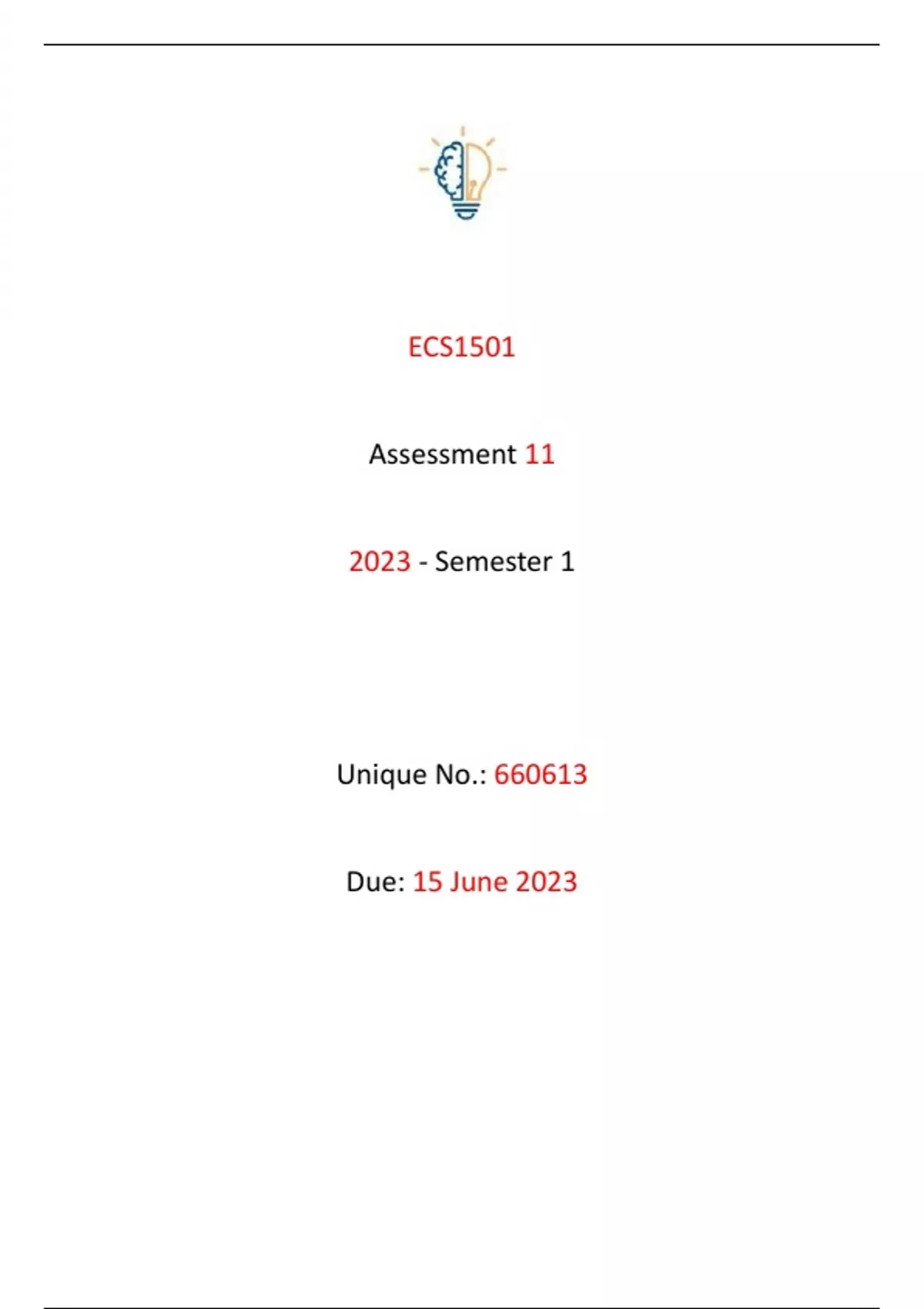 Complete suggested solutions to ECS1501 Assignment 11 for 2023 semester 1.. Guaranteed very good marks! Please feel free to contact us should you have any queries and if you find this document useful please remember to leave us a review :) All the best!