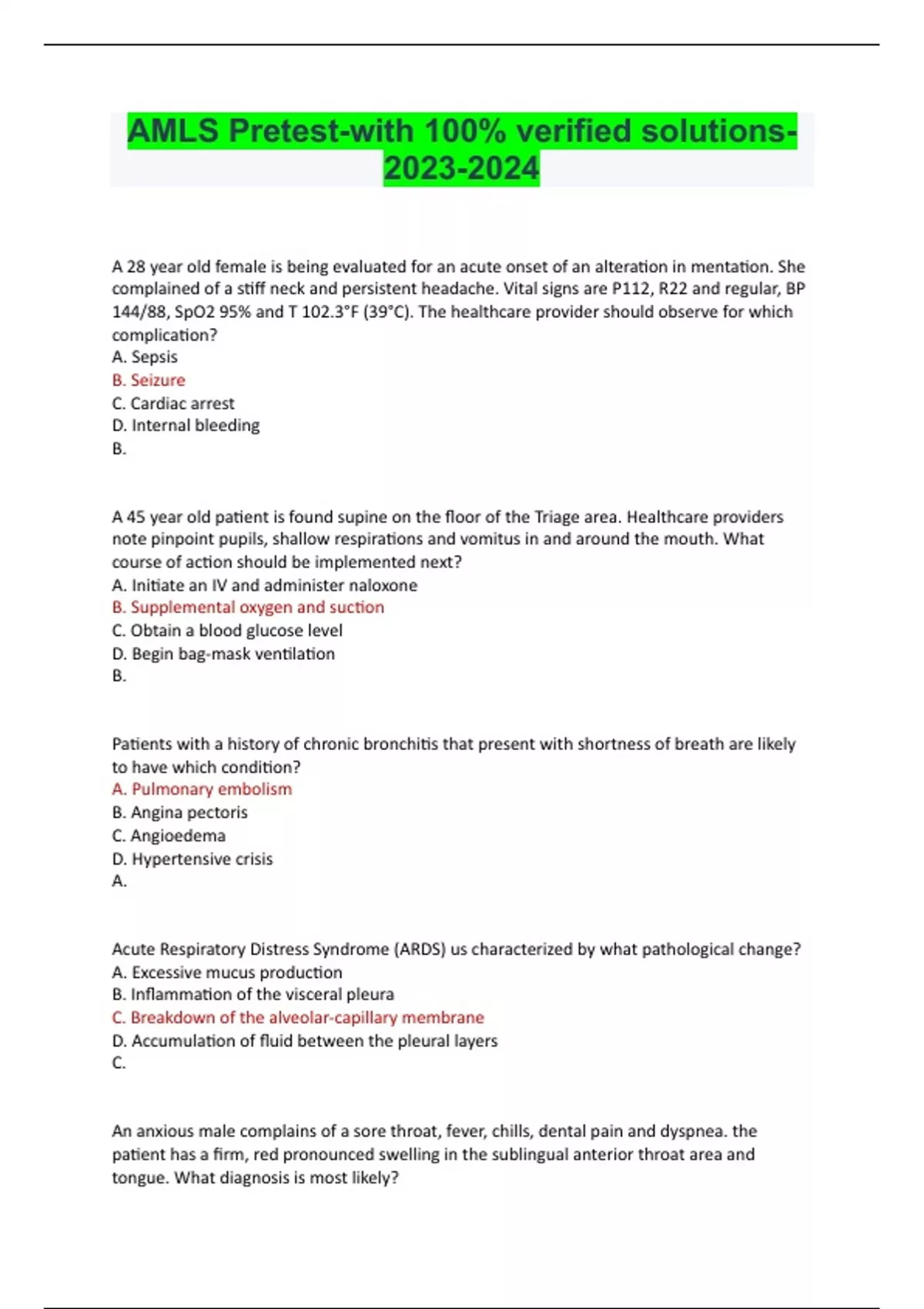 AMLS Pretest-with 100% verified solutions-