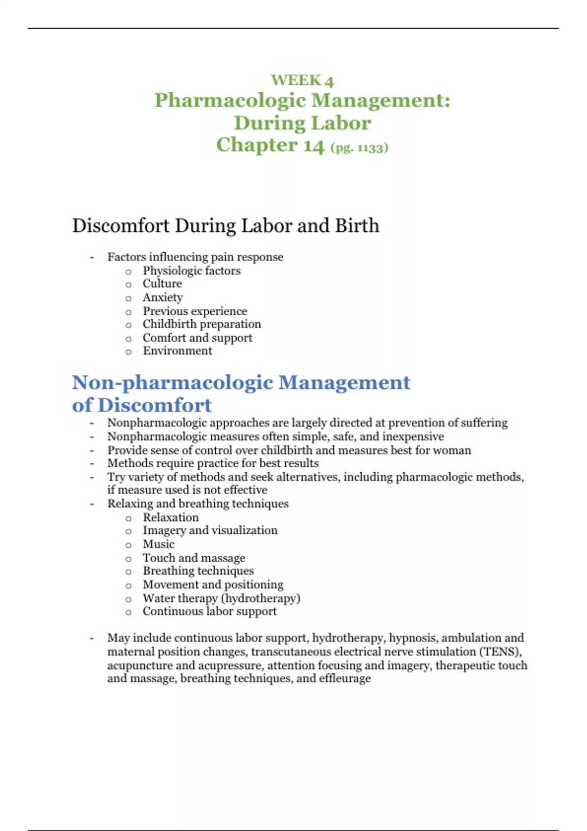 MATERNAL PHARMACOLOGIC MANAGEMENT