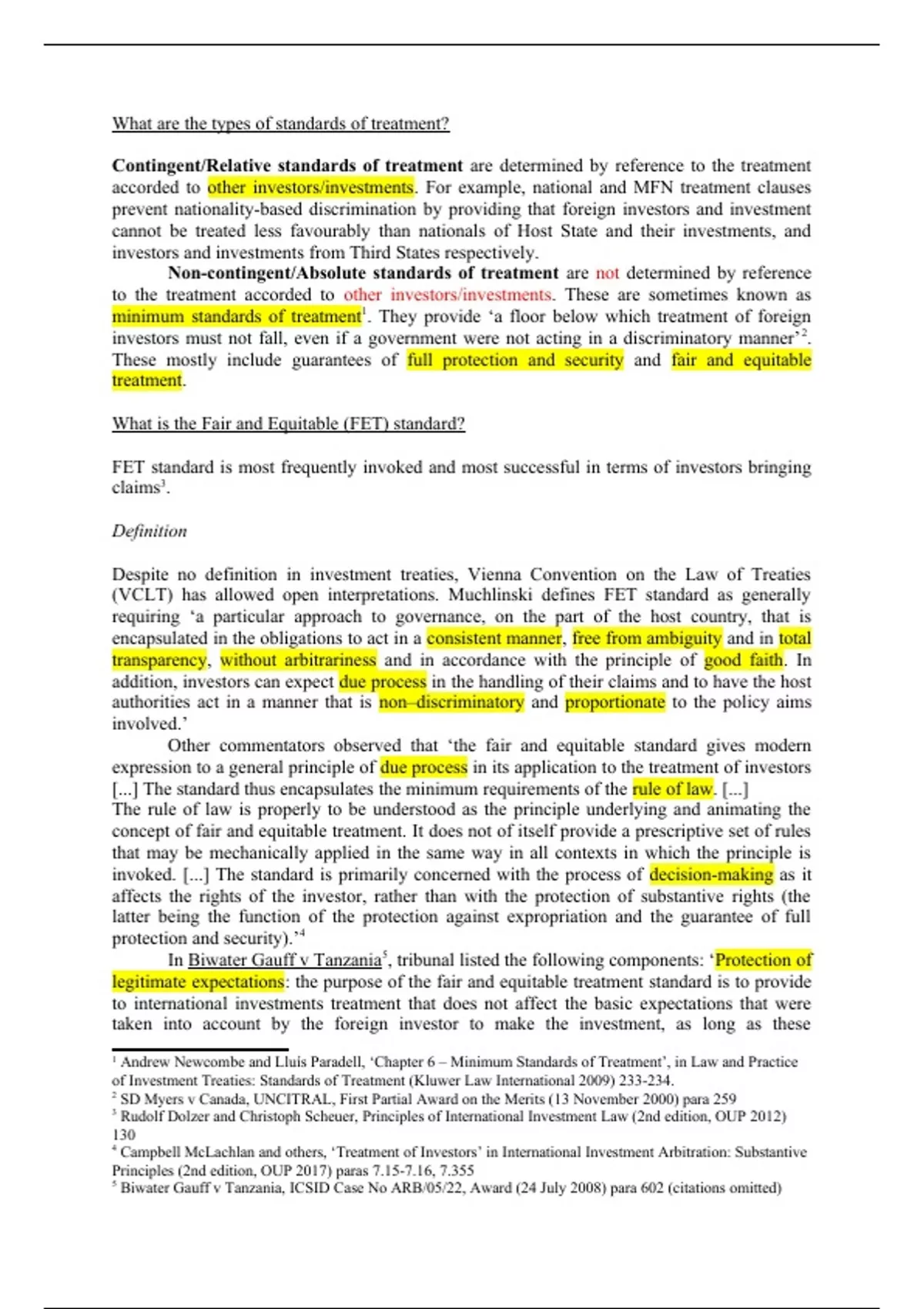 of Investment Treaties: Standards of Treatment (Kluwer Law International 2009) 233-234.