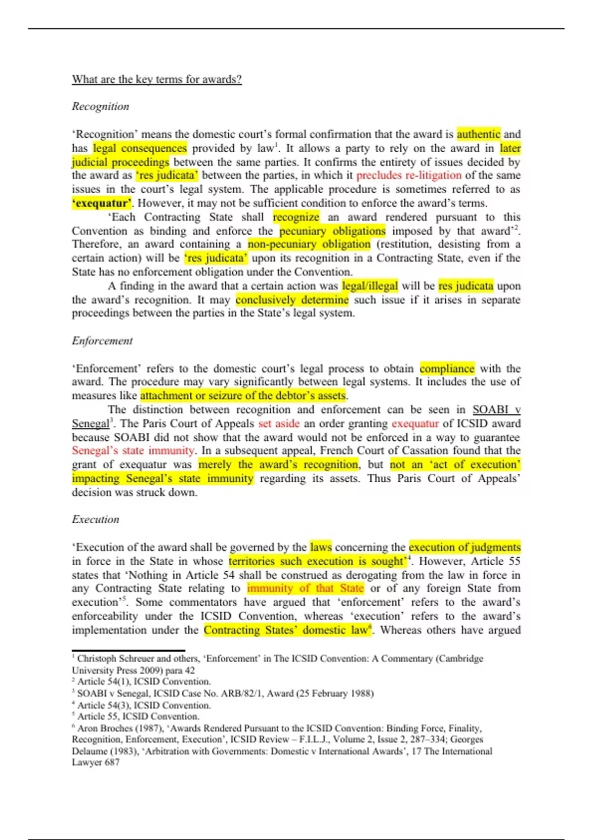 enforceability under the ICSID Convention, whereas ‘execution’ refers to the award’s