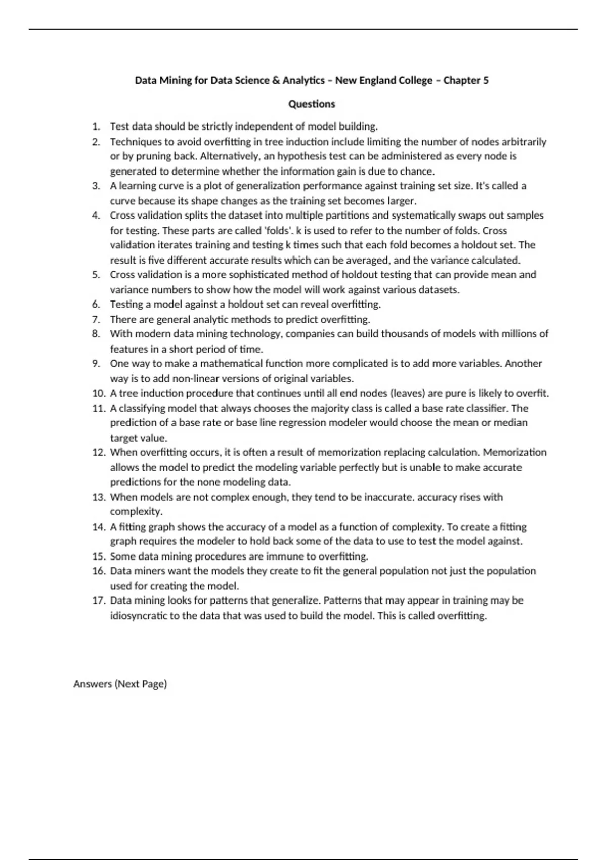 Data Mining for Data Science and Analytics - New England College - Quiz - 5