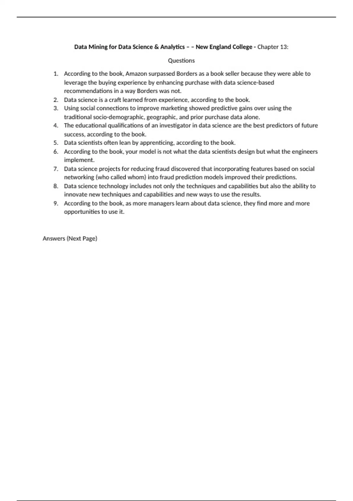 Data Mining for Data Science and Analytics - New England College - Quiz 13