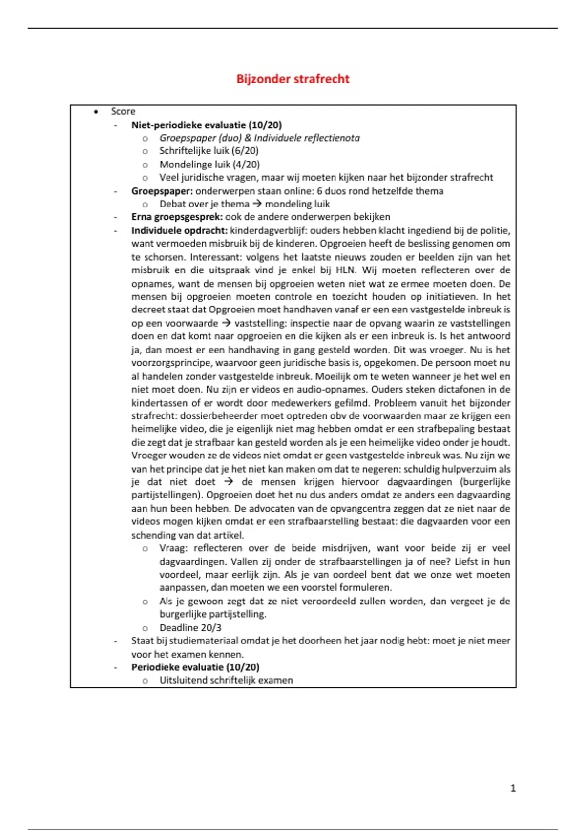 Dit is een samenvatting van het keuzevak bijzonder strafrecht (rechten en criminologie). Het wordt gedoceerd aan de UGent door prof. De Bondt. Het bevat alle slides en is aangevuld met lesnotities en de reader waar nodig. Geslaagd in eerste zit.