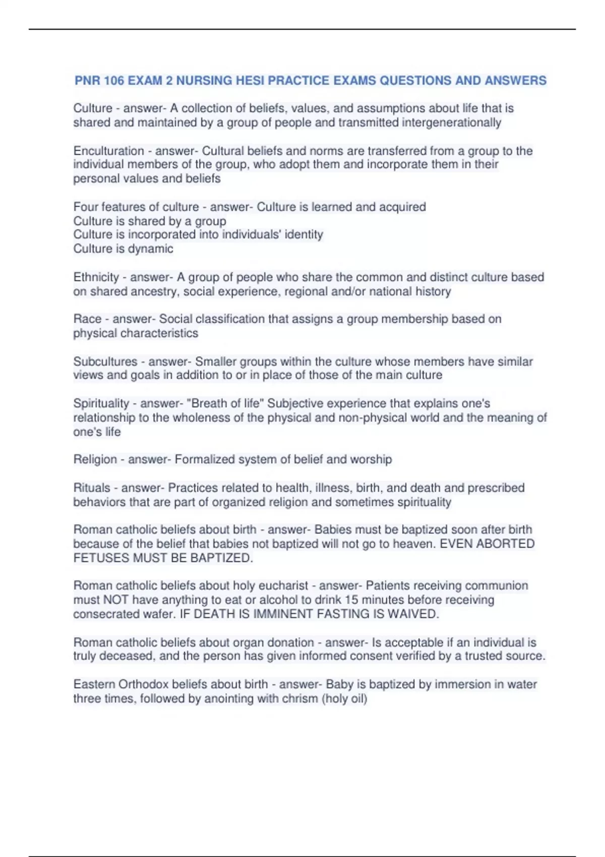 PNR 106 EXAM 2 NURSING HESI PRACTICE EXAMS QUESTIONS AND ANSWERS
