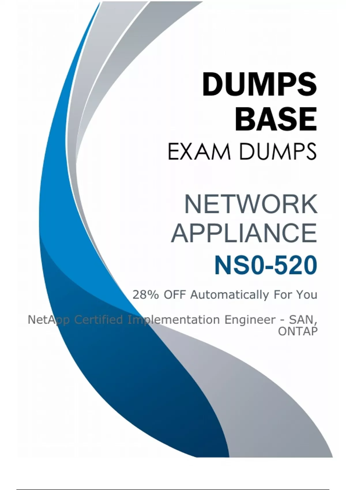 The Network Appliance NS0-520 exam, also known as NetApp Certified Implementation Engineer - SAN, ONTAP, is a great Network Appliance exam that measures your skills and knowledge. To prepare for the Network Appliance NS0-520 exam, you can choose the reliable Network Appliance NS0-520 dumps V10.02 to make sure that you have a strong understanding of NetApp Certified Implementation Engineer - SAN, ONTAP exam topics. Using NS0-520 exam dumps of DumpsBase can be an effective way to help you familiarize yourselves with the real questions. We ensure your success on the first attempt.