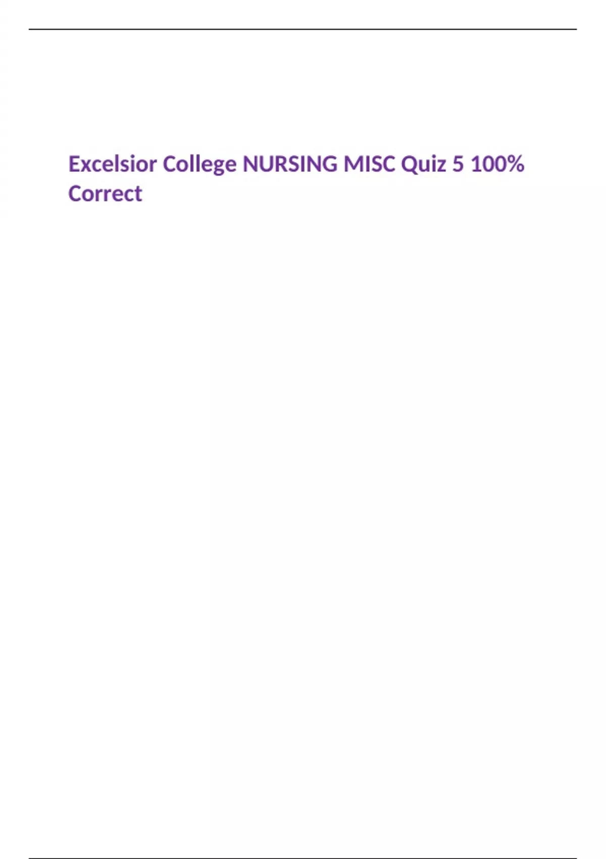Excelsior College NURSING MISC Quiz 5 100% Correct
