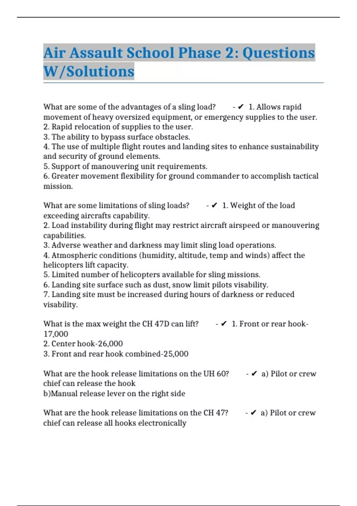 Air Assault School Phase 2: Questions W/Solutions