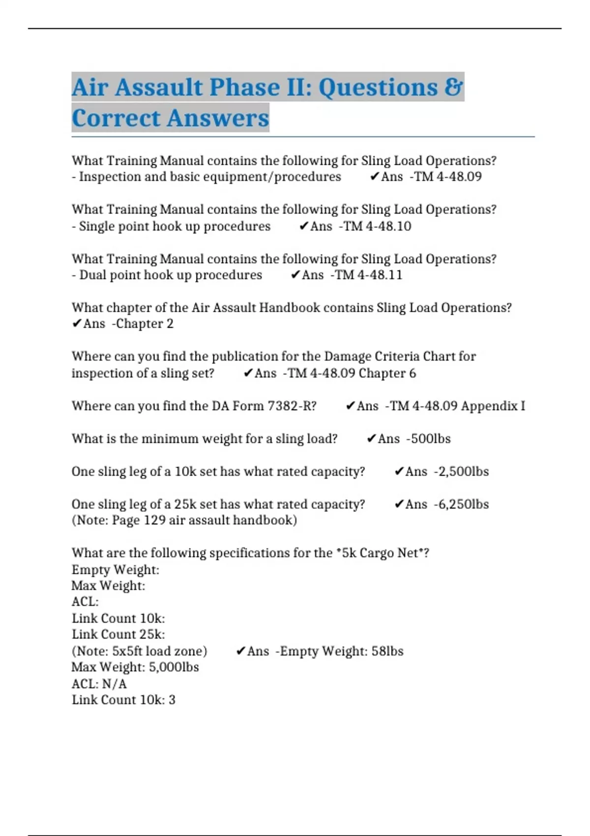 Air Assault Phase II: Questions & Correct Answers