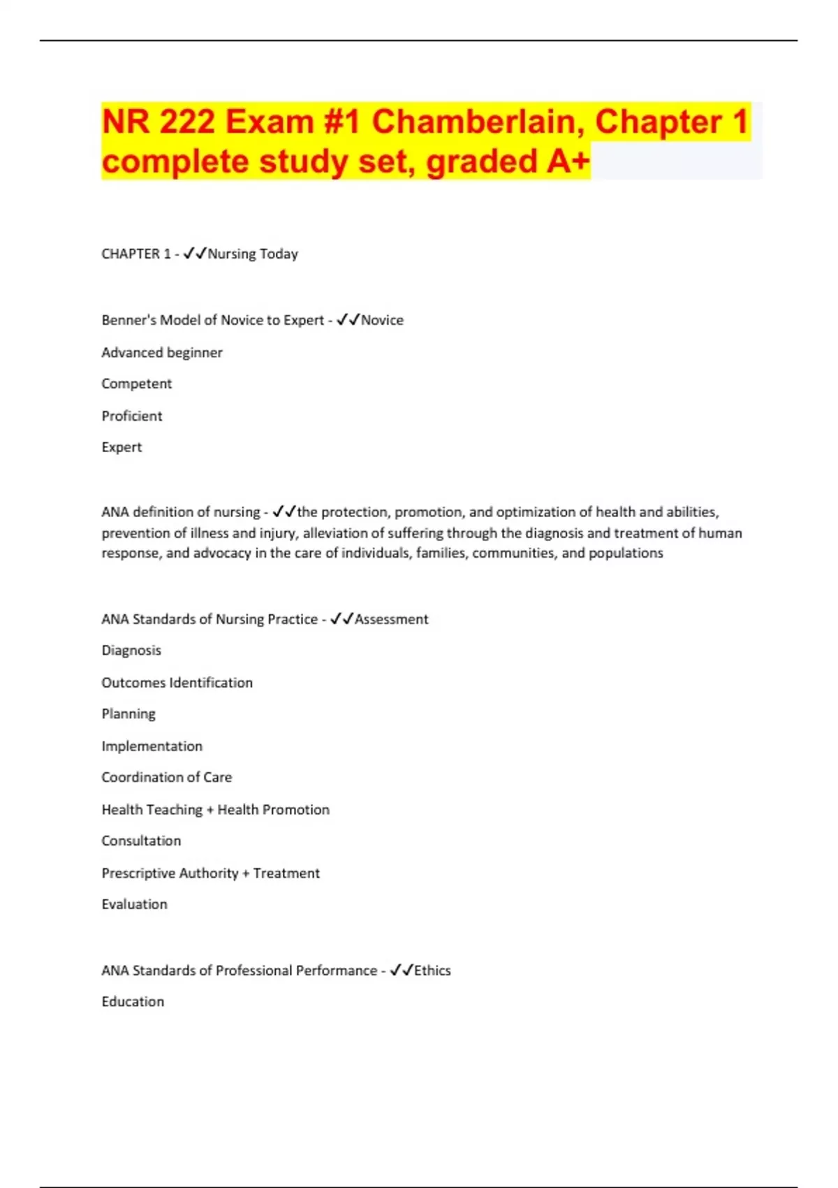 NR 222 Exam #1 Chamberlain, Chapter 1 complete study set, graded A+