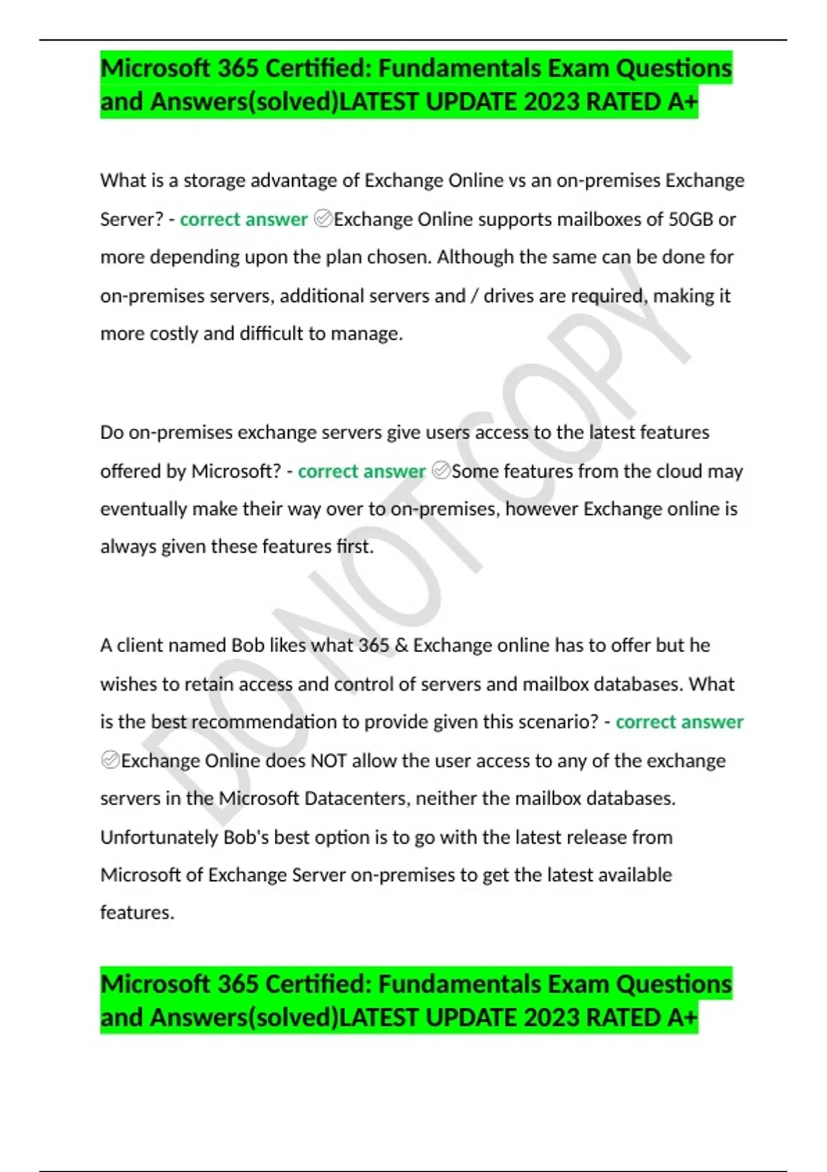 MS-900: Microsoft 365 Fundamentals Exam Questions and Answers (with correct solutions) LATEST DOWNLOAD 2023 RATED A+