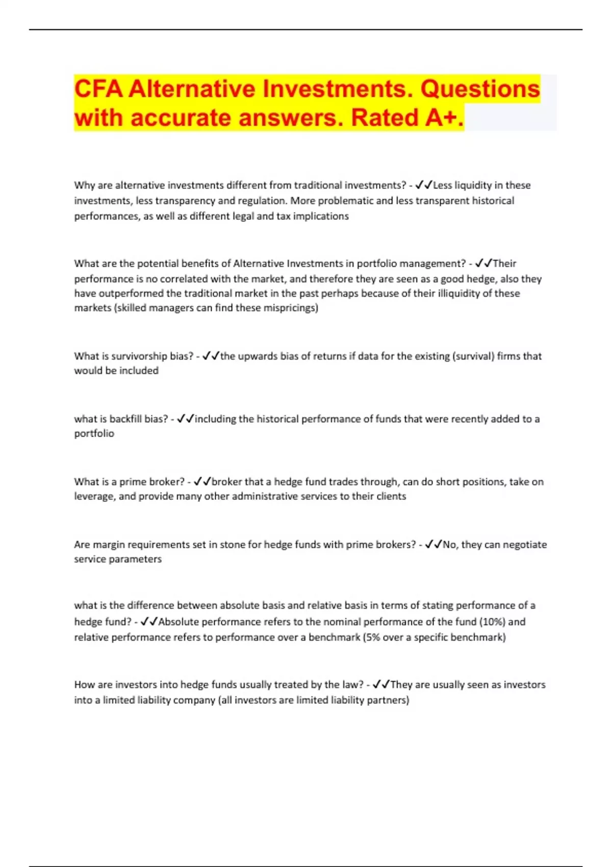 cfa alternative investments questions with accurate answers rated a document content and description below cfa alternative investments questions with accurate answers rated a why are alternati