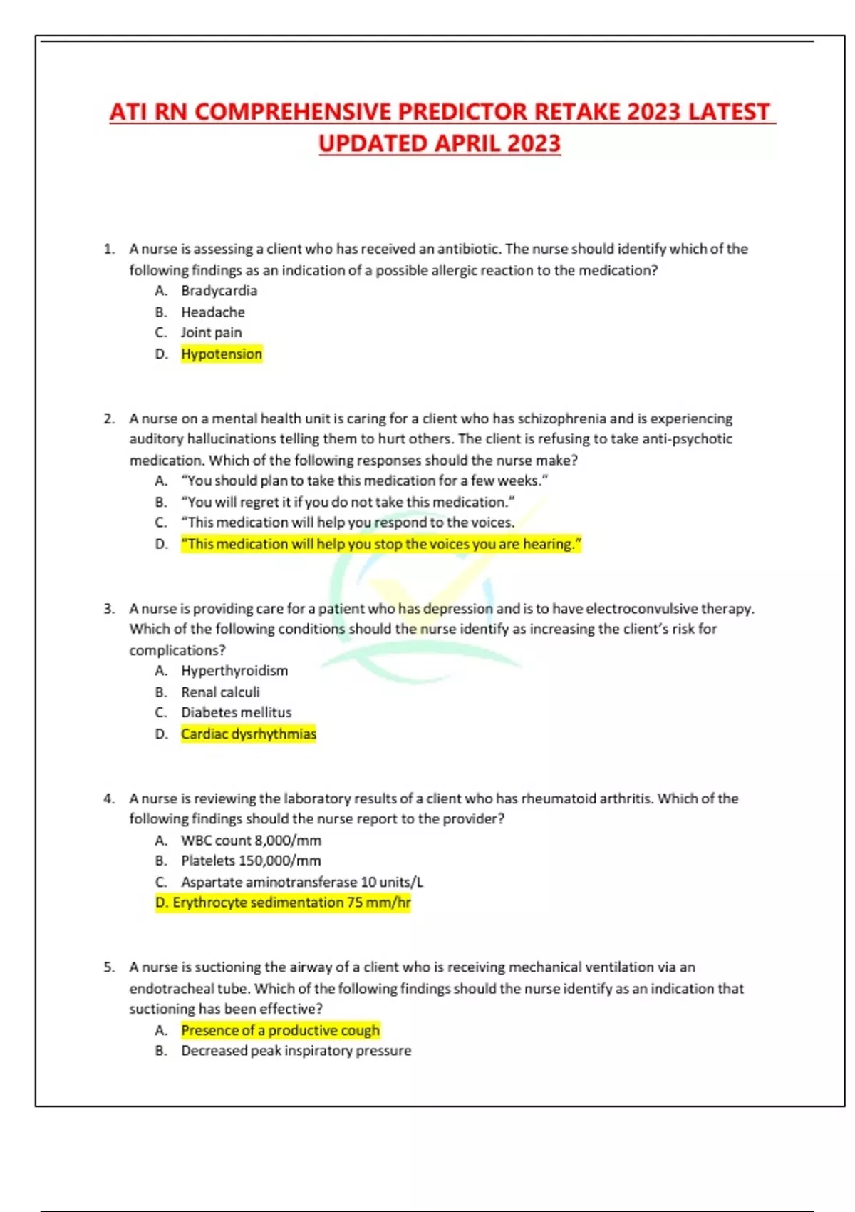 ATI RN COMPREHENSIVE PREDICTOR RETAKE 2023 LATEST UPDATED APRIL 2023