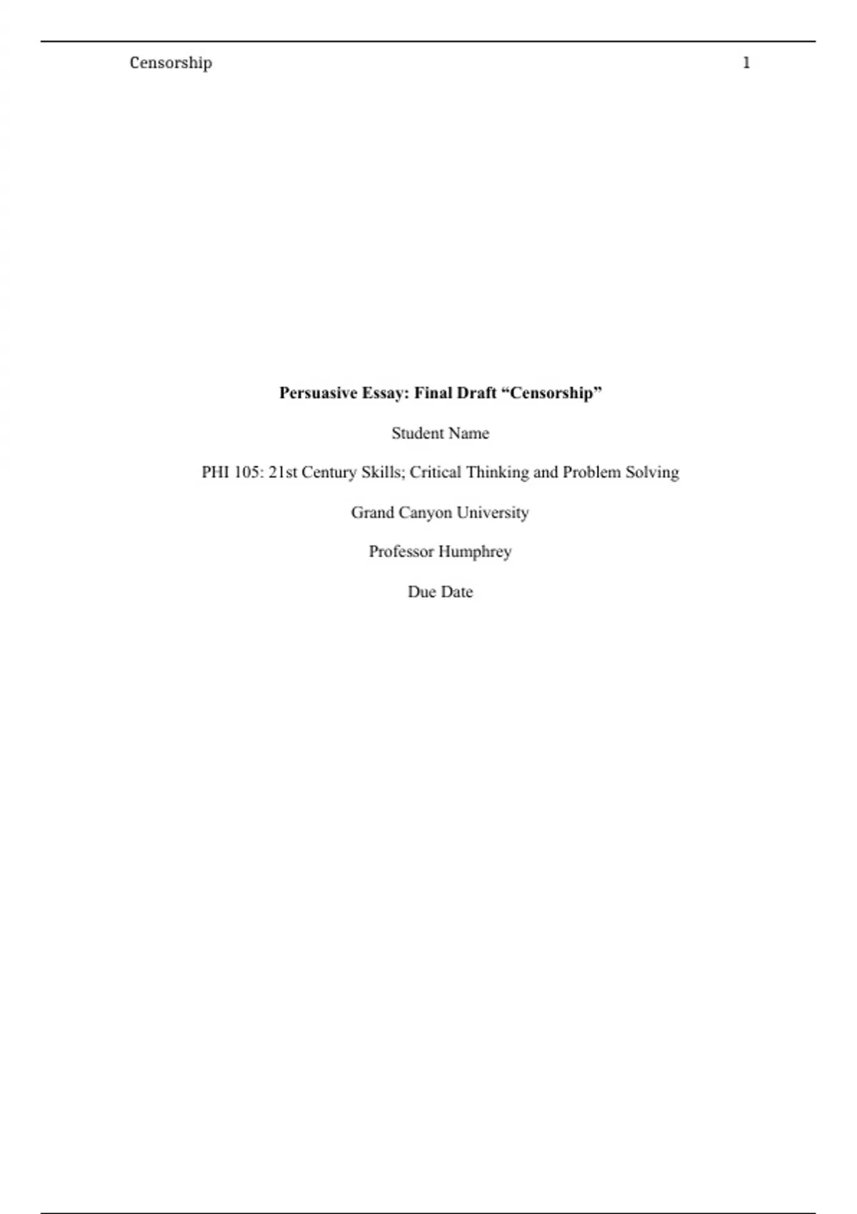 phi 105 topic 7 assignment persuasive essay final draft censorship