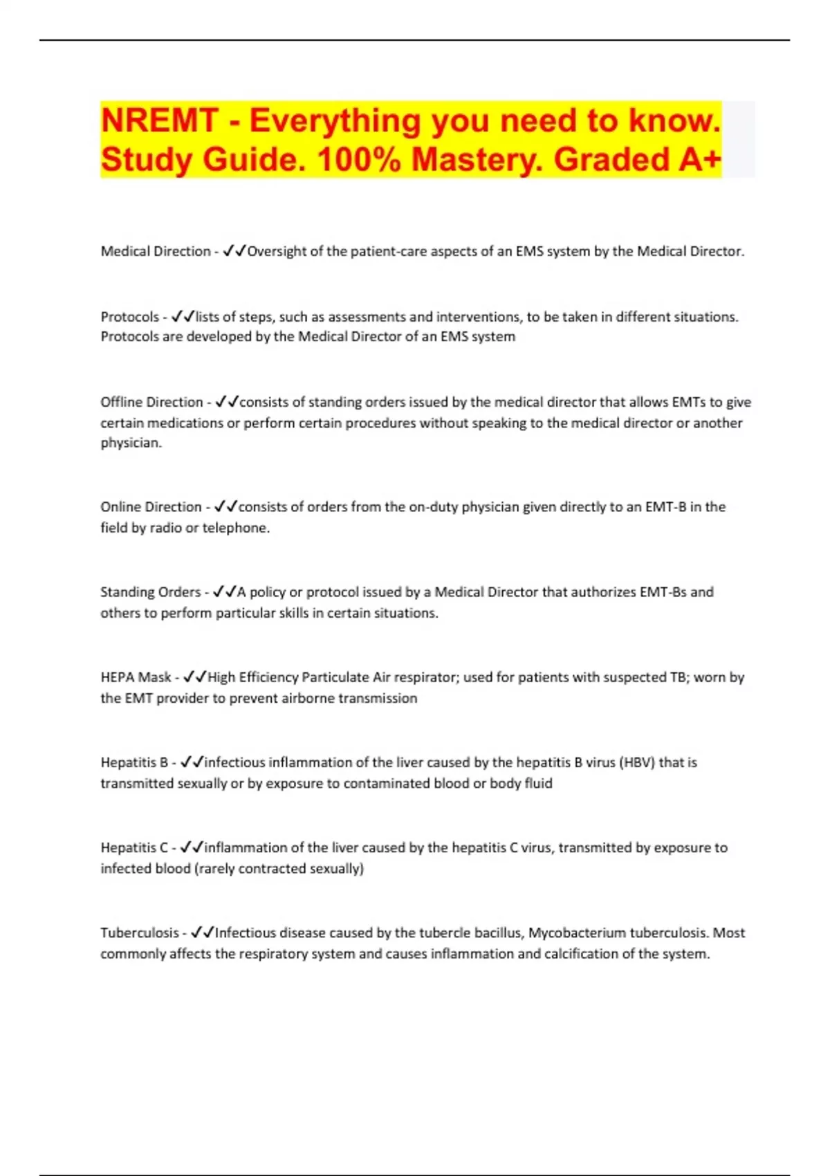 NREMT - Everything you need to know. Study Guide. 100% Mastery. Graded A+