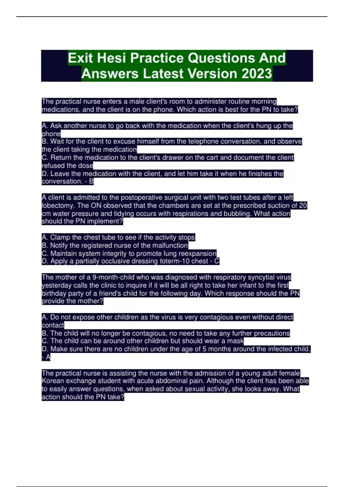 Exit Hesi Practice Questions And Answers Latest Version 2023