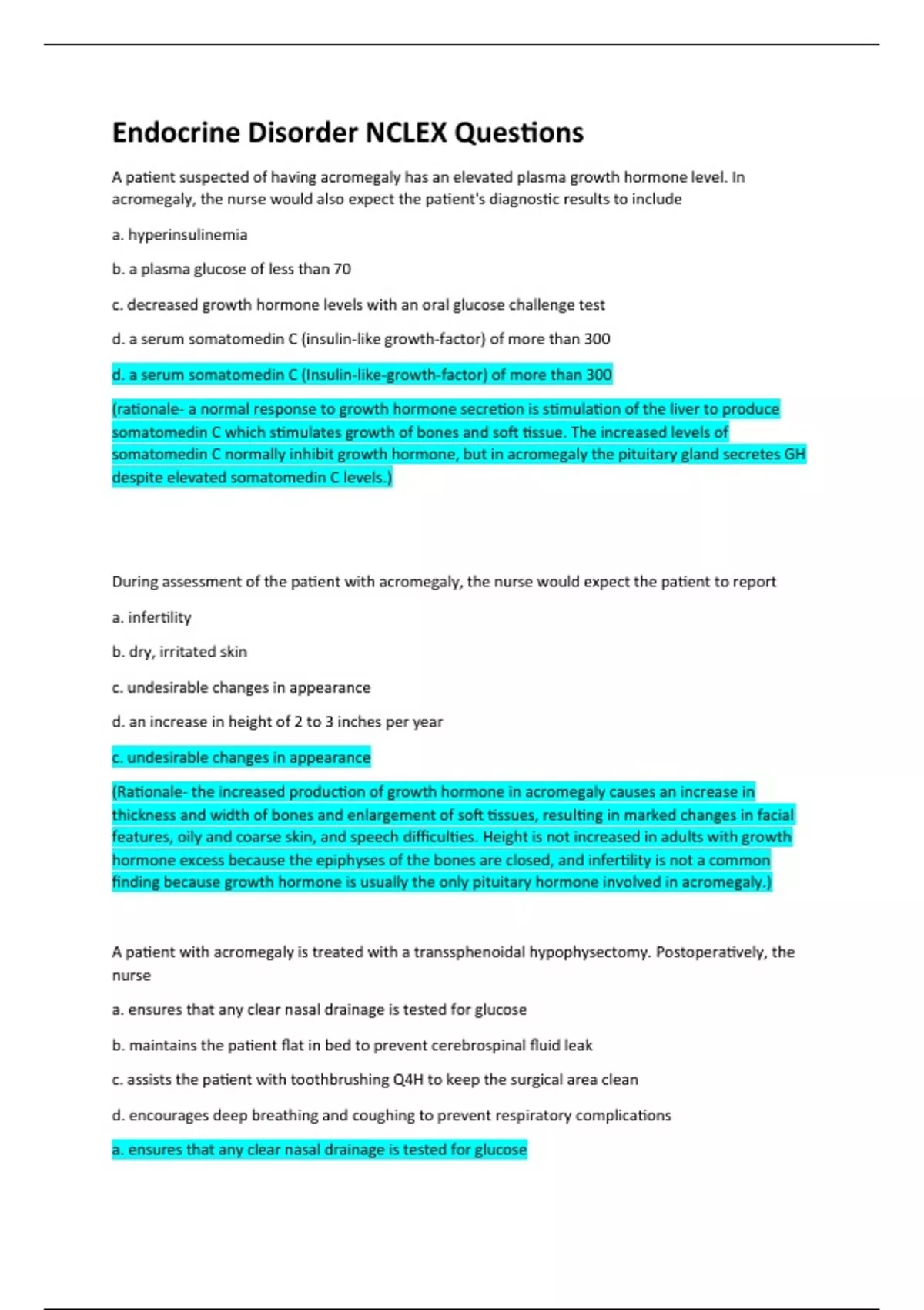 Endocrine Disorder NCLEX Questions WITH COMPLETE ANSWERS 2022/2023