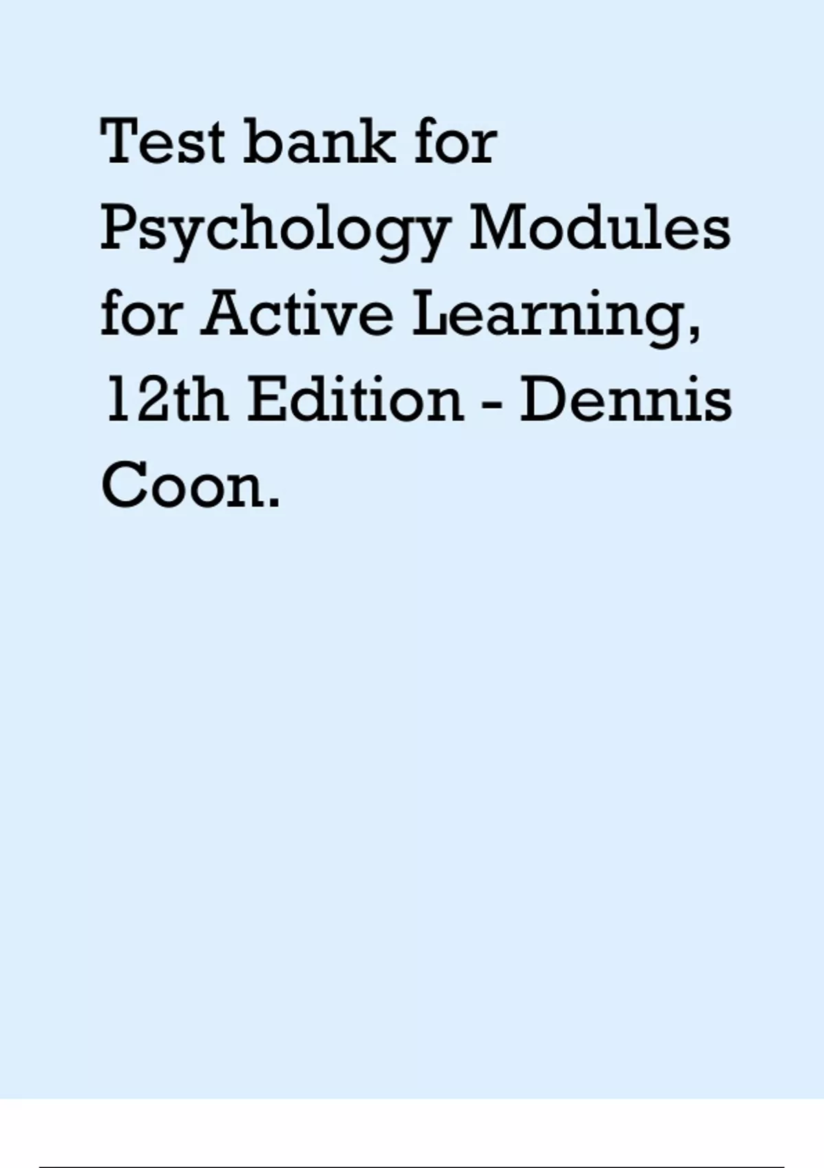 Test bank for Psychology Modules for Active Learning, 12th Edition - Dennis Coon.Test bank for Psychology Modules for Active Learning, 12th Edition - Dennis Coon.Test bank for Psychology Modules for Active Learning, 12th Edition - Dennis Coon.