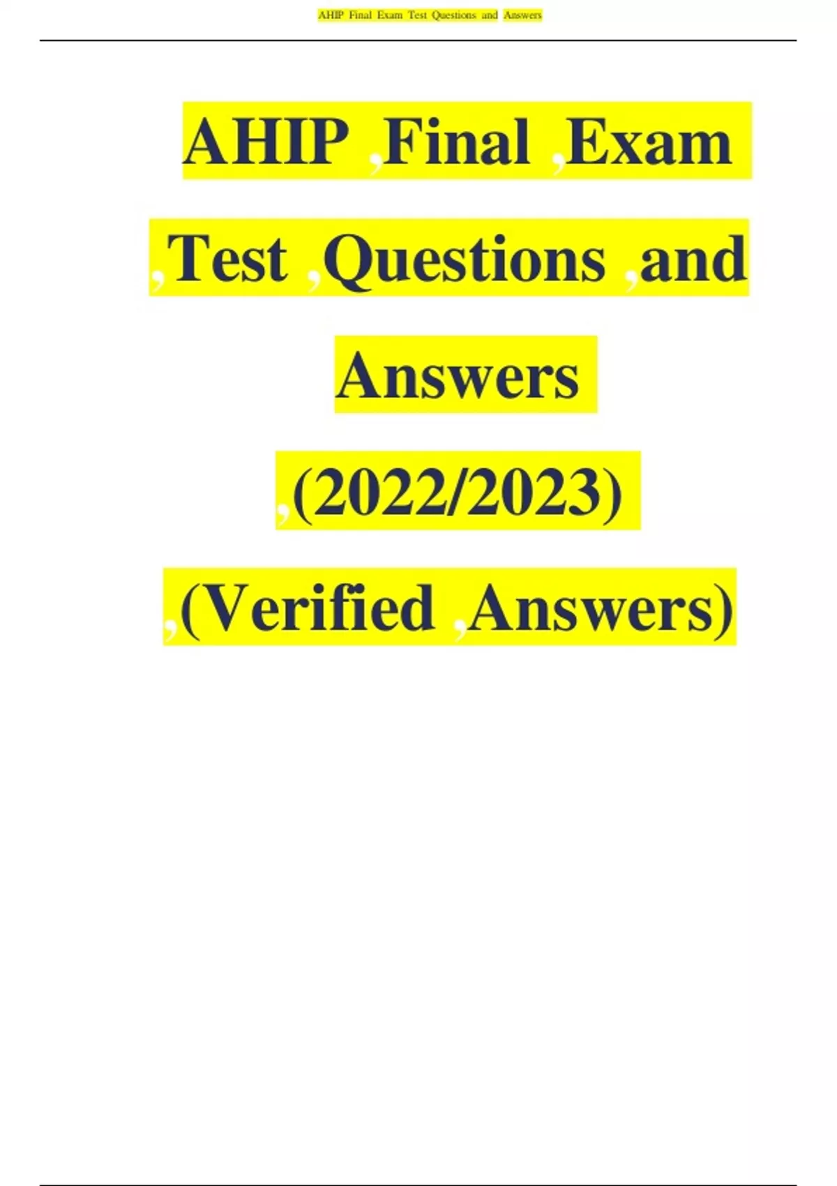 AHIP Final Exam Test Questions and Answers () (Verified Answers).AHIP Final Exam Test Questions and Answers () (Verified Answers).AHIP Final Exam Test Questions and Answers () (Verified Answers).