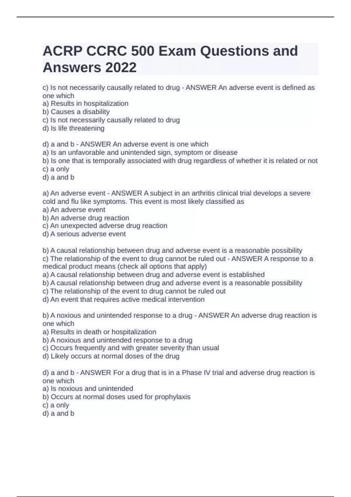 ACRP CCRC 500 Exam Questions and Answers 2022