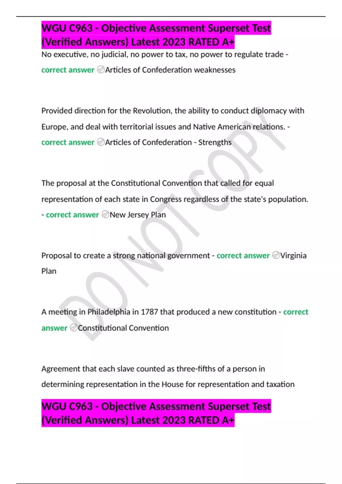 WGU C963 - Objective Assessment Superset