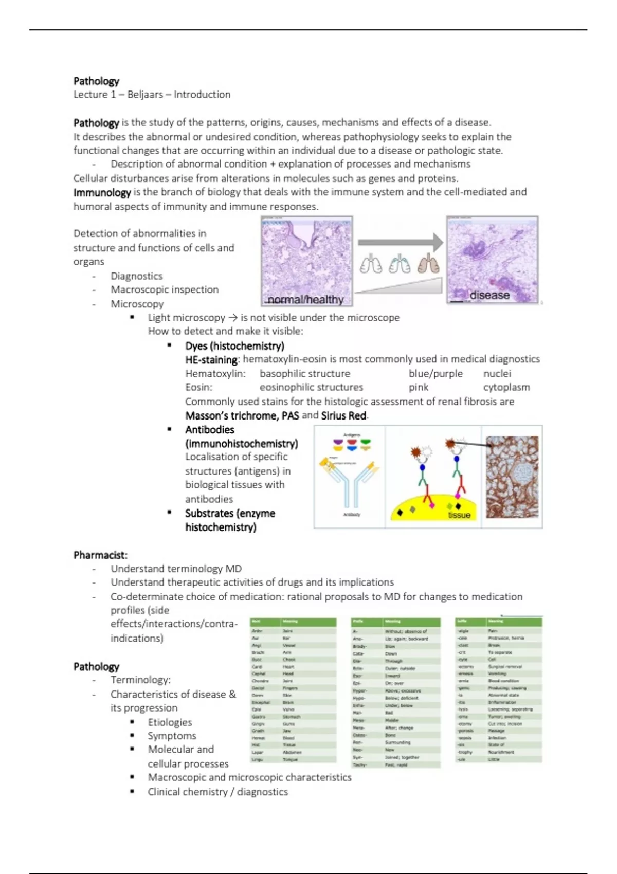 Summary of Pathology lectures 1 to 15, including supporting images. Lecture notes are included here.