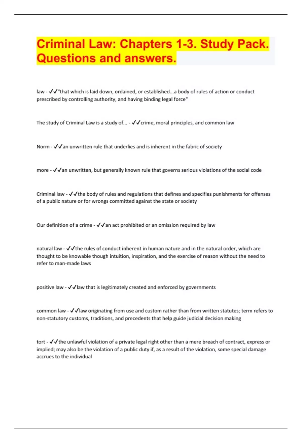 Criminal Law: Chapters 1-3. Study Pack. Questions and answers.