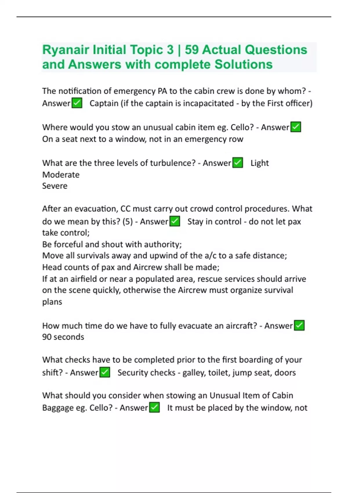 Ryanair Initial Topic 3 | 59 Actual Questions and Answers with complete Solutions